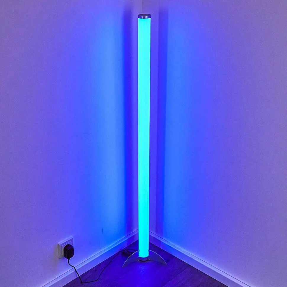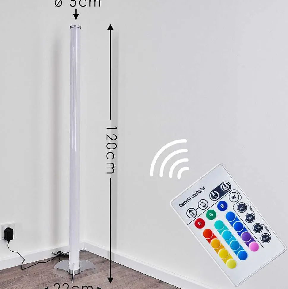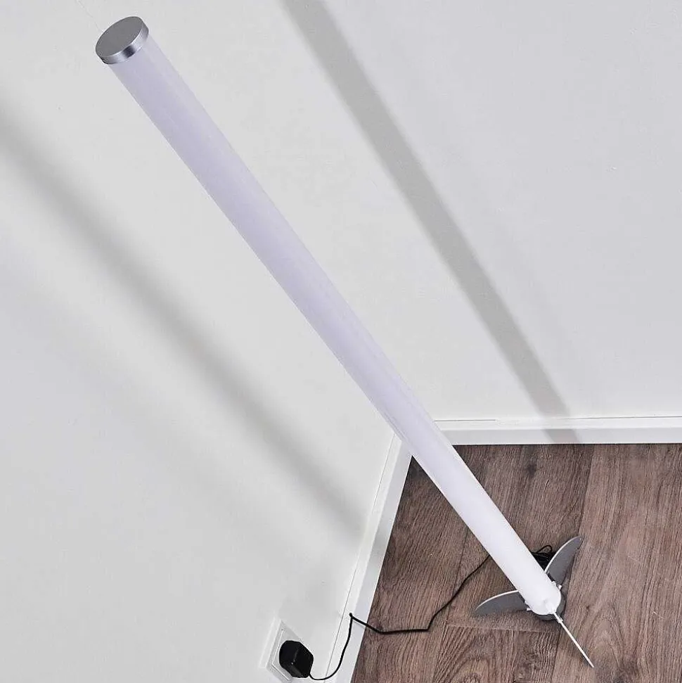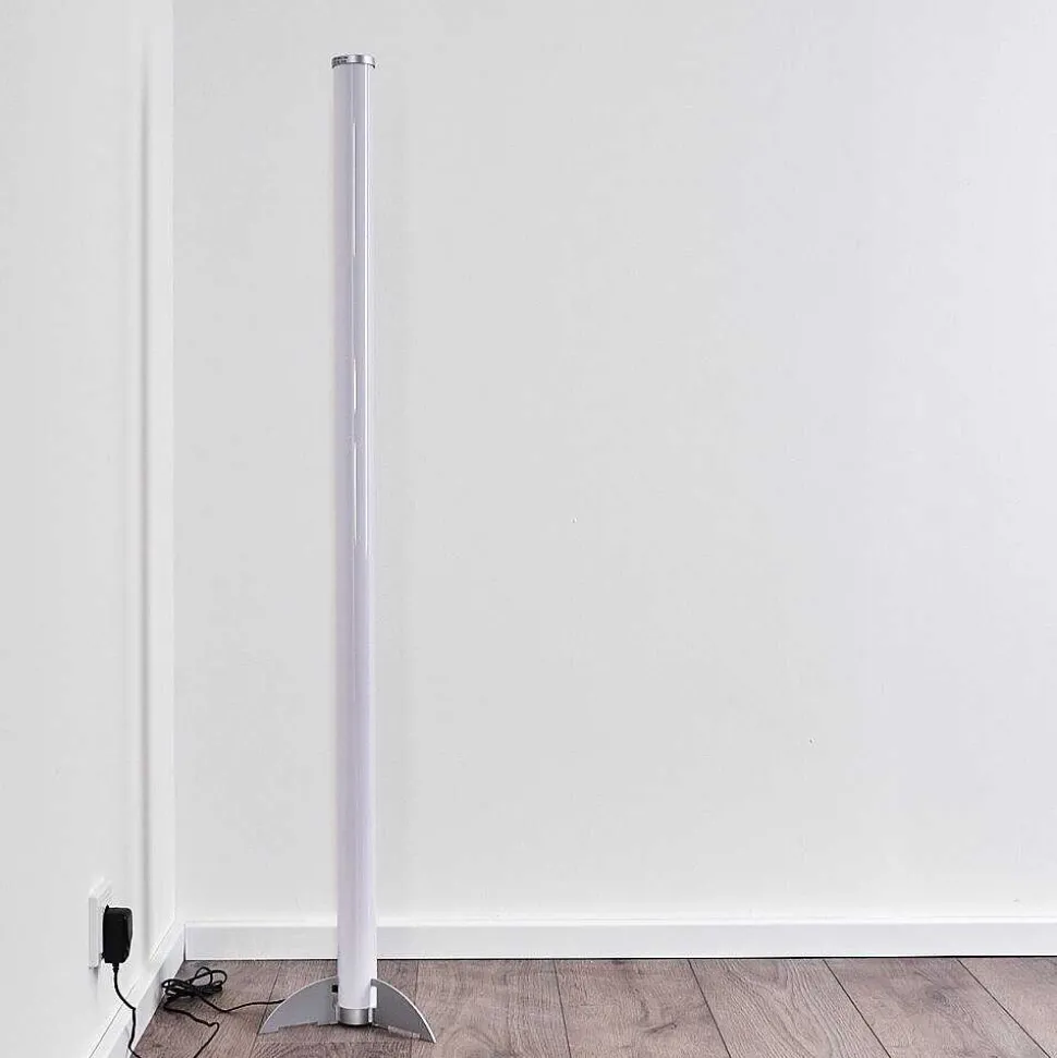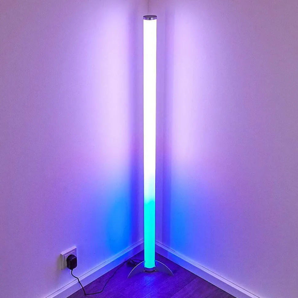 Lampadaire Led Rgb Globo Rocky Argente, 1 Lumiere, Telecommandes, Changeur De Couleurs