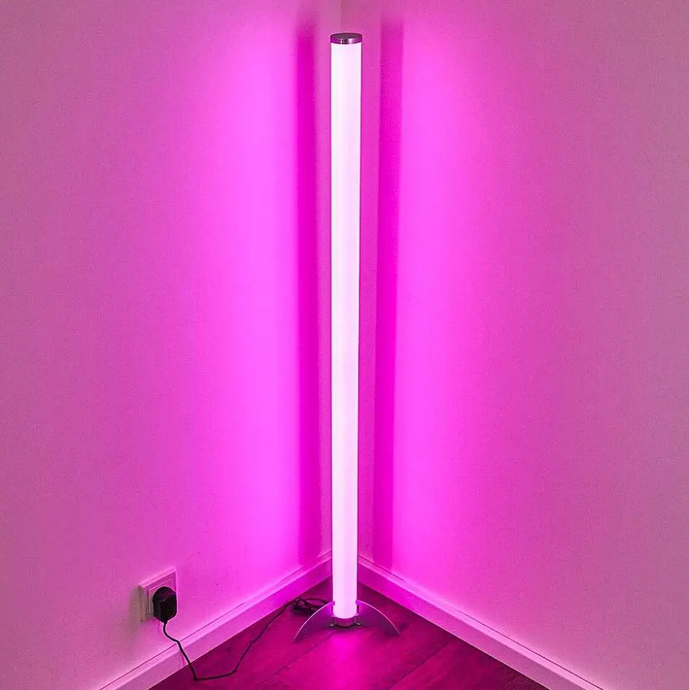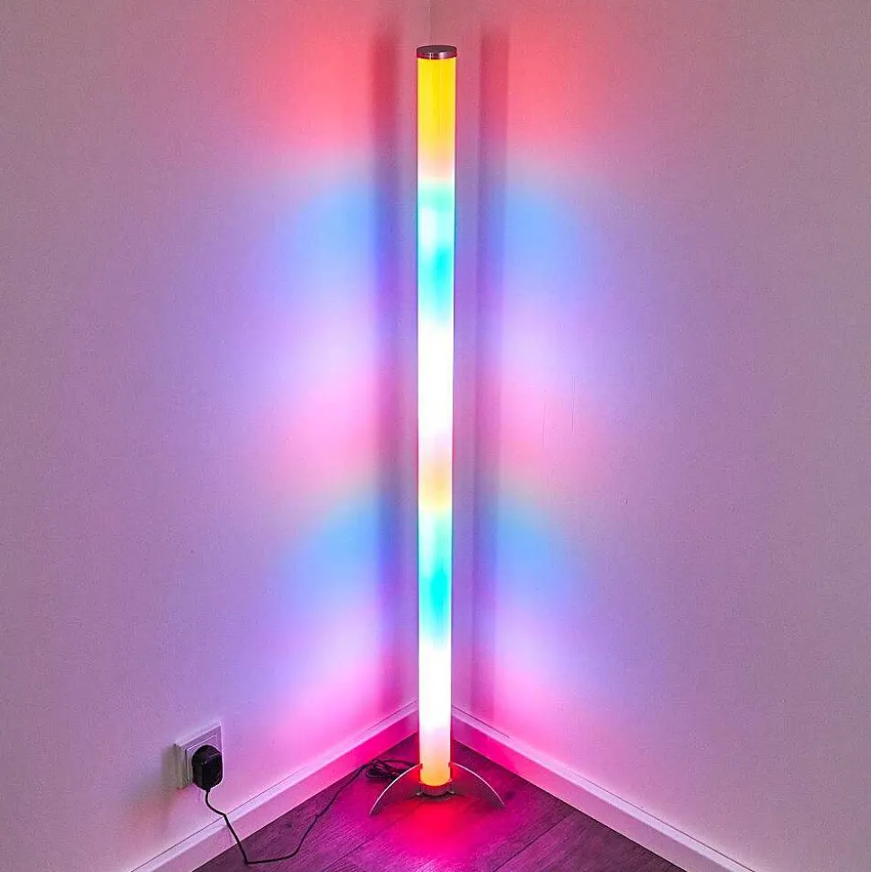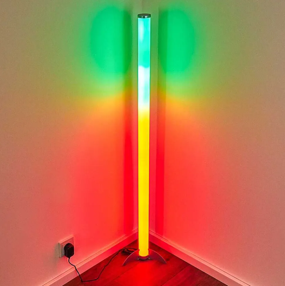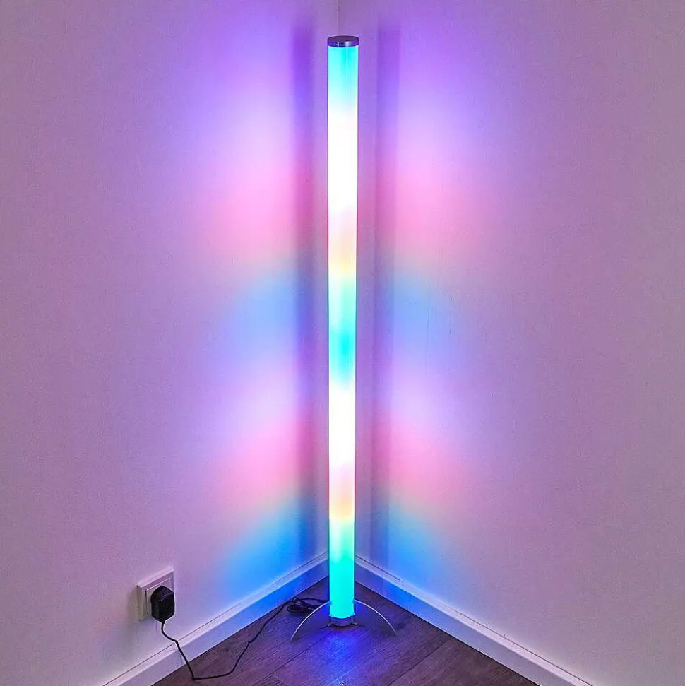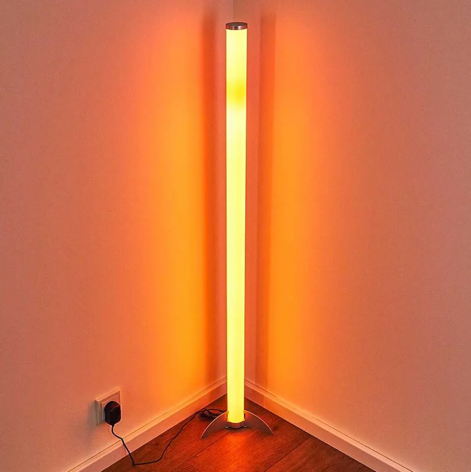 Lampadaire Led Rgb Globo Rocky Argente, 1 Lumiere, Telecommandes, Changeur De Couleurs