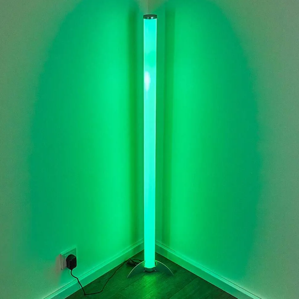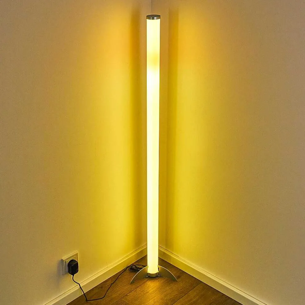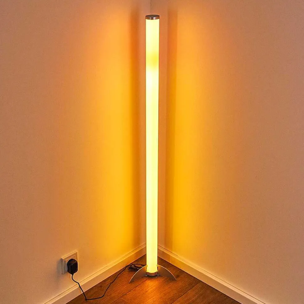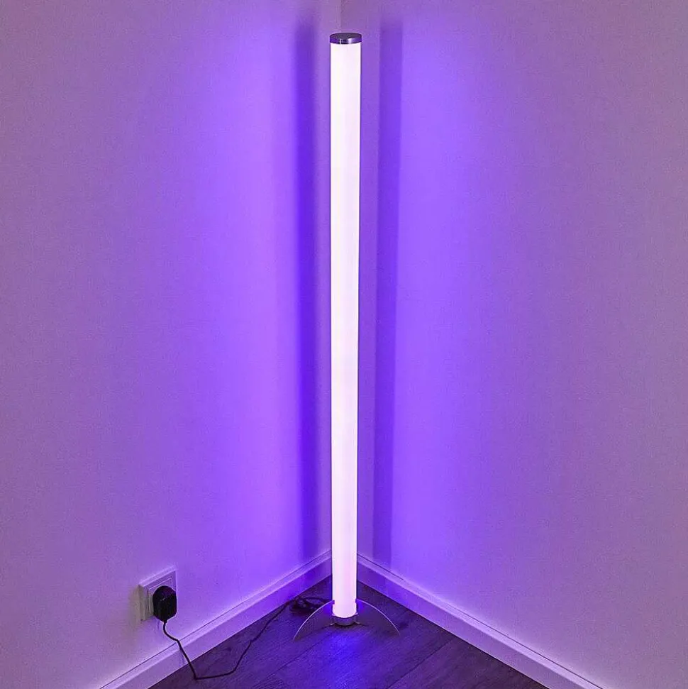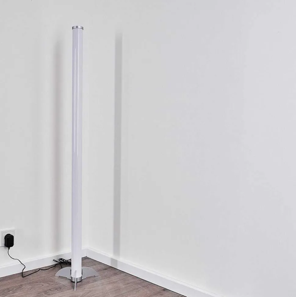 Lampadaire Led Rgb Globo Rocky Argente, 1 Lumiere, Telecommandes, Changeur De Couleurs