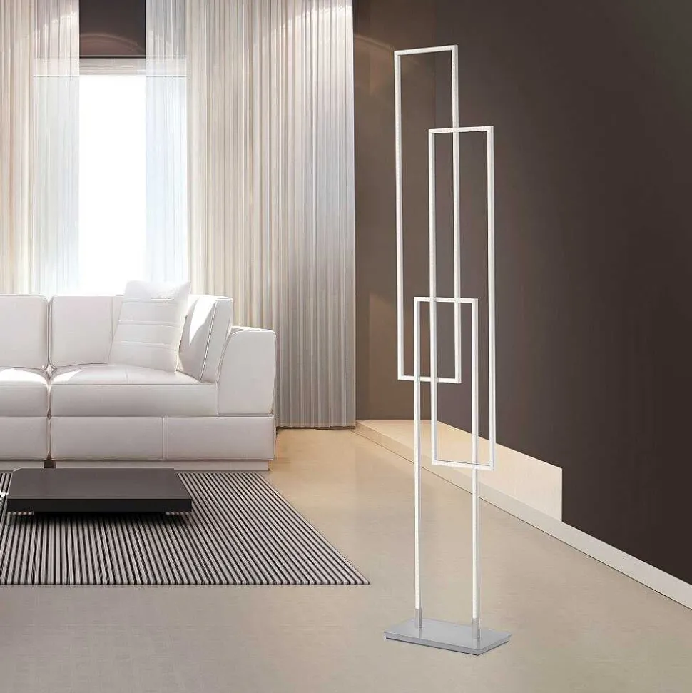 Lampadaire Paul-Neuhaus Q-Vito Led Acier Brosse, 3 Lumieres, Telecommandes
