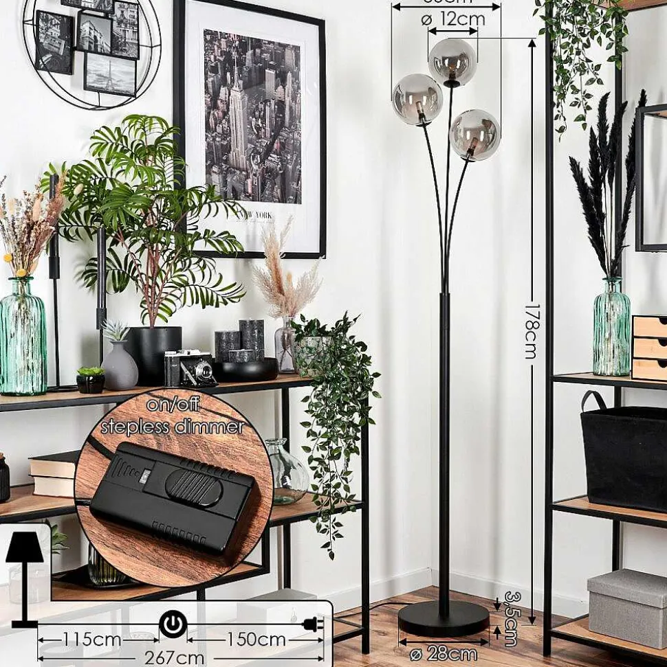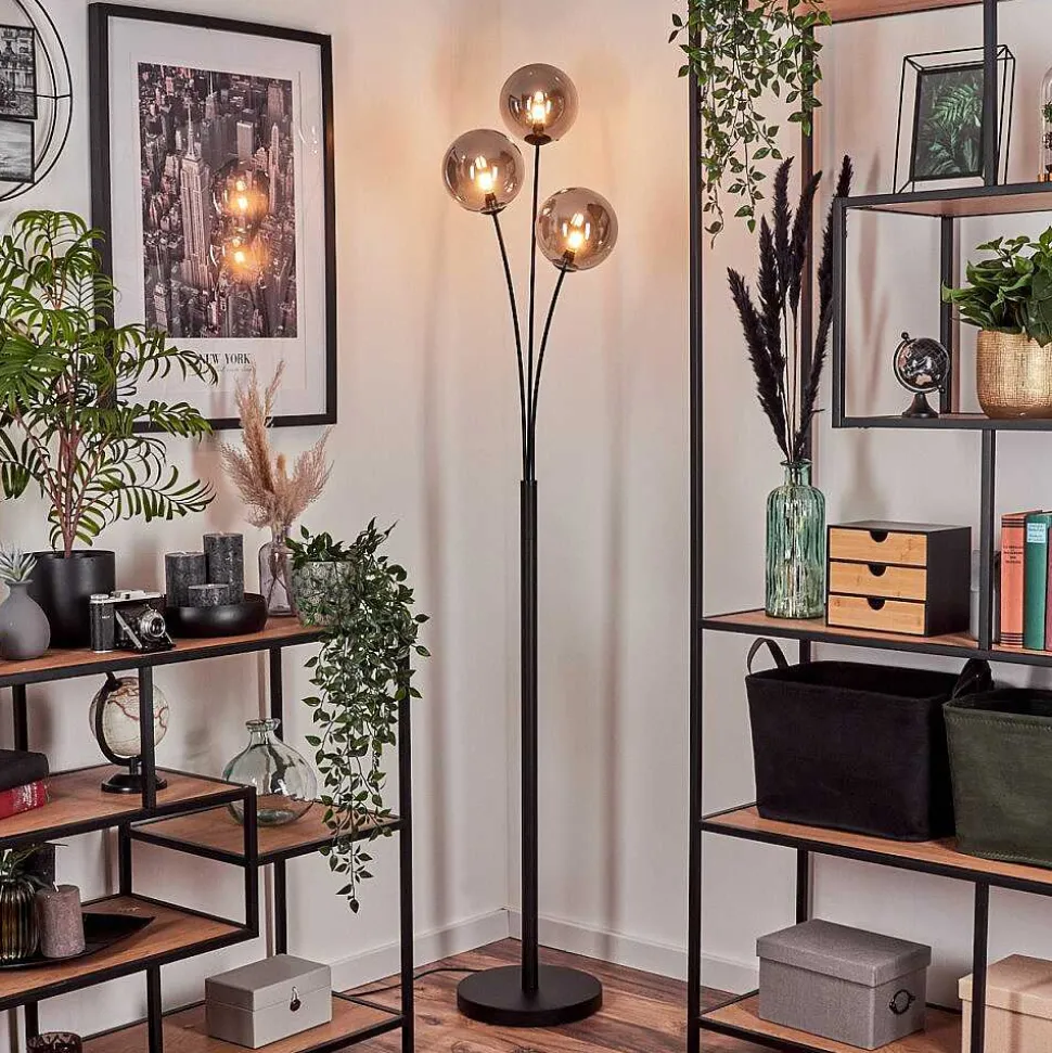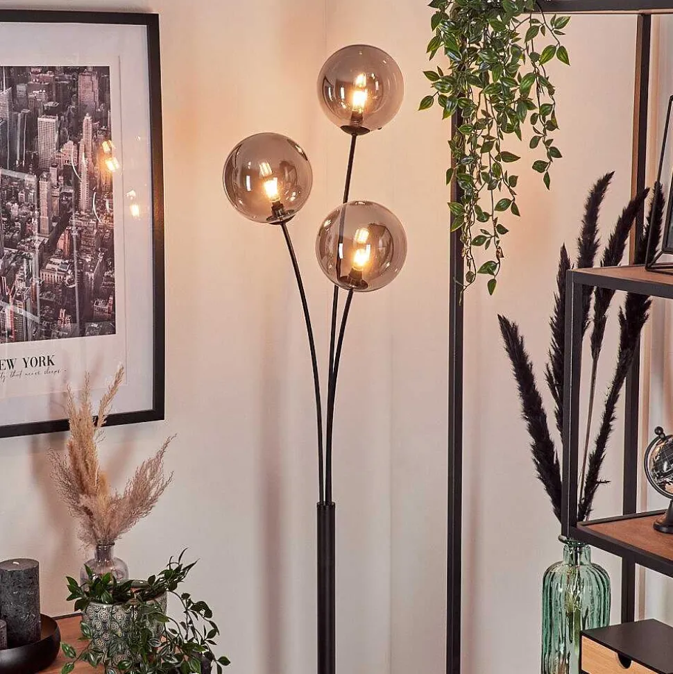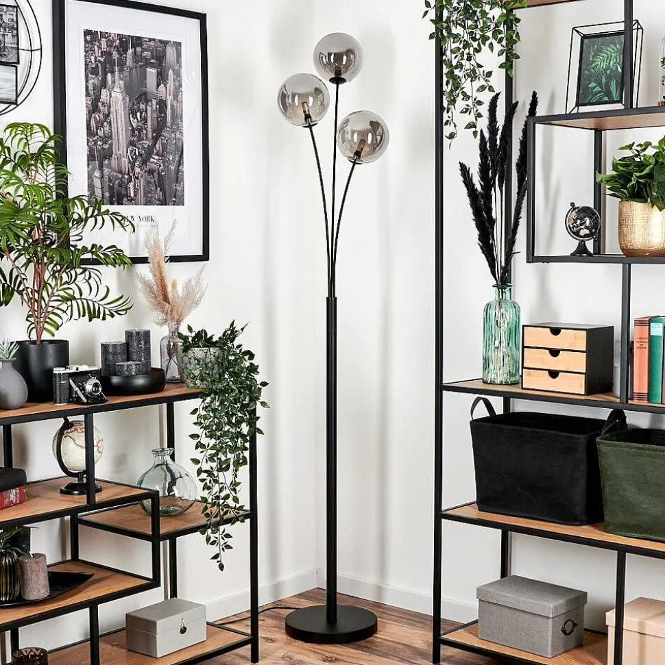 Lampadaire – Verre 15 Cm Bernado Fume, 3 Lumieres