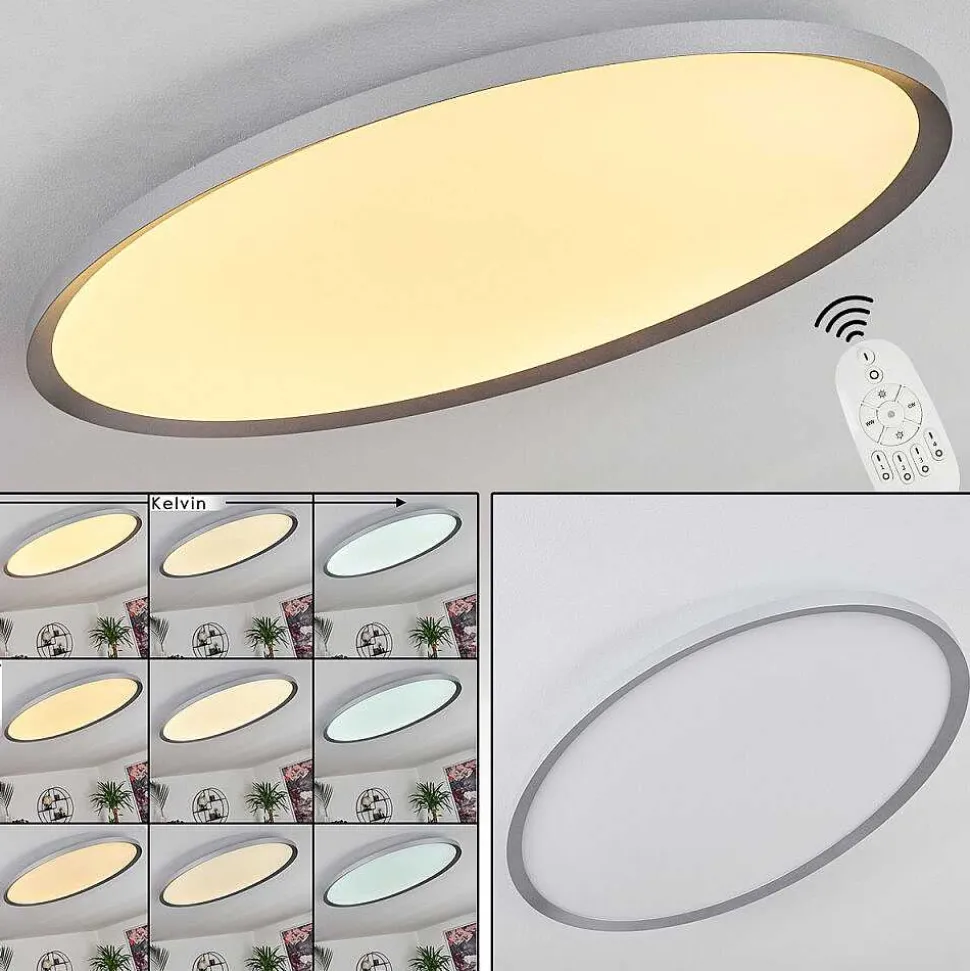 Plafonnier Salmi Led Couleur Bois, Noir, Blanc, 1 Lumiere, Telecommandes