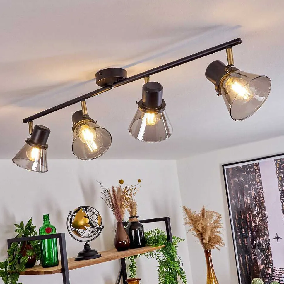 Plafonnier Abel Noir Dore, 4 Lumieres
