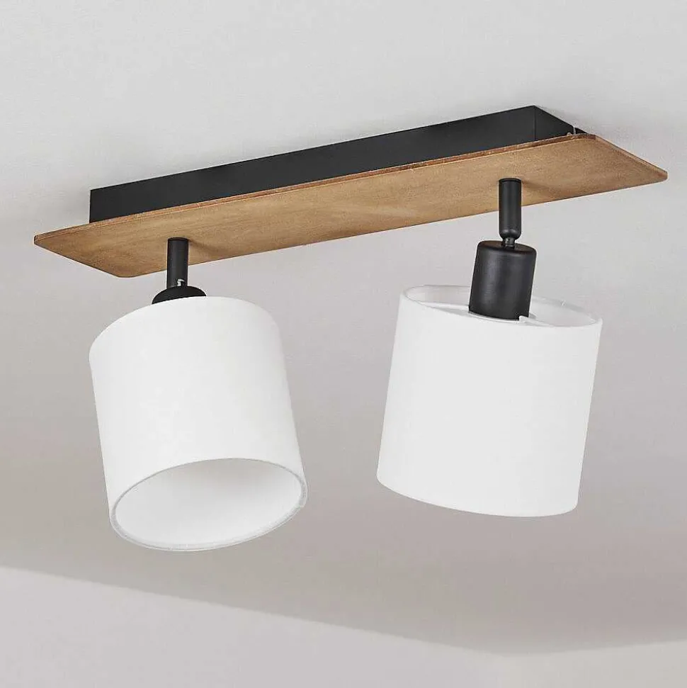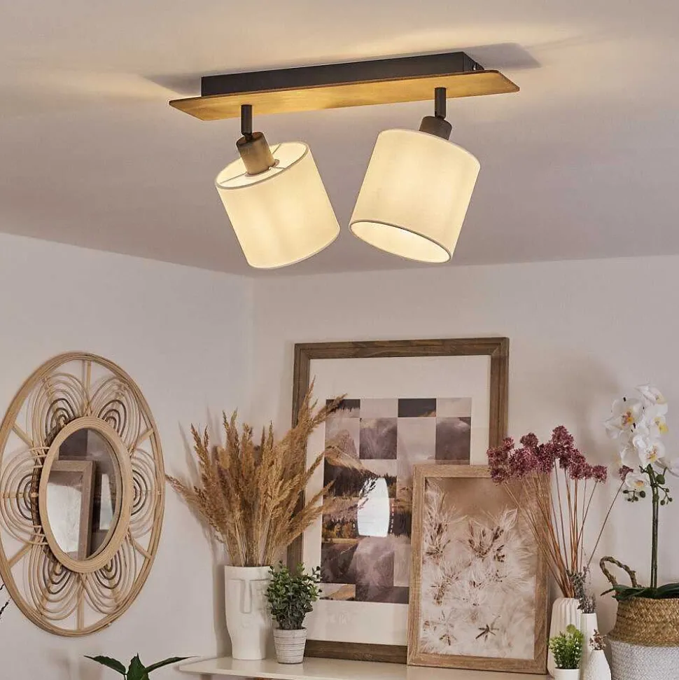 Plafonnier Salmi Led Brun, Couleur Bois, Noir, 1 Lumiere, Telecommandes
