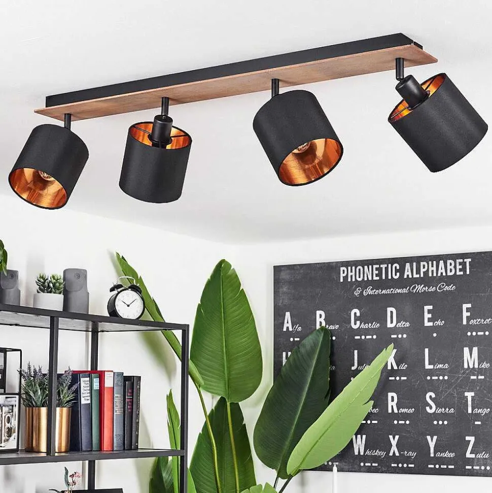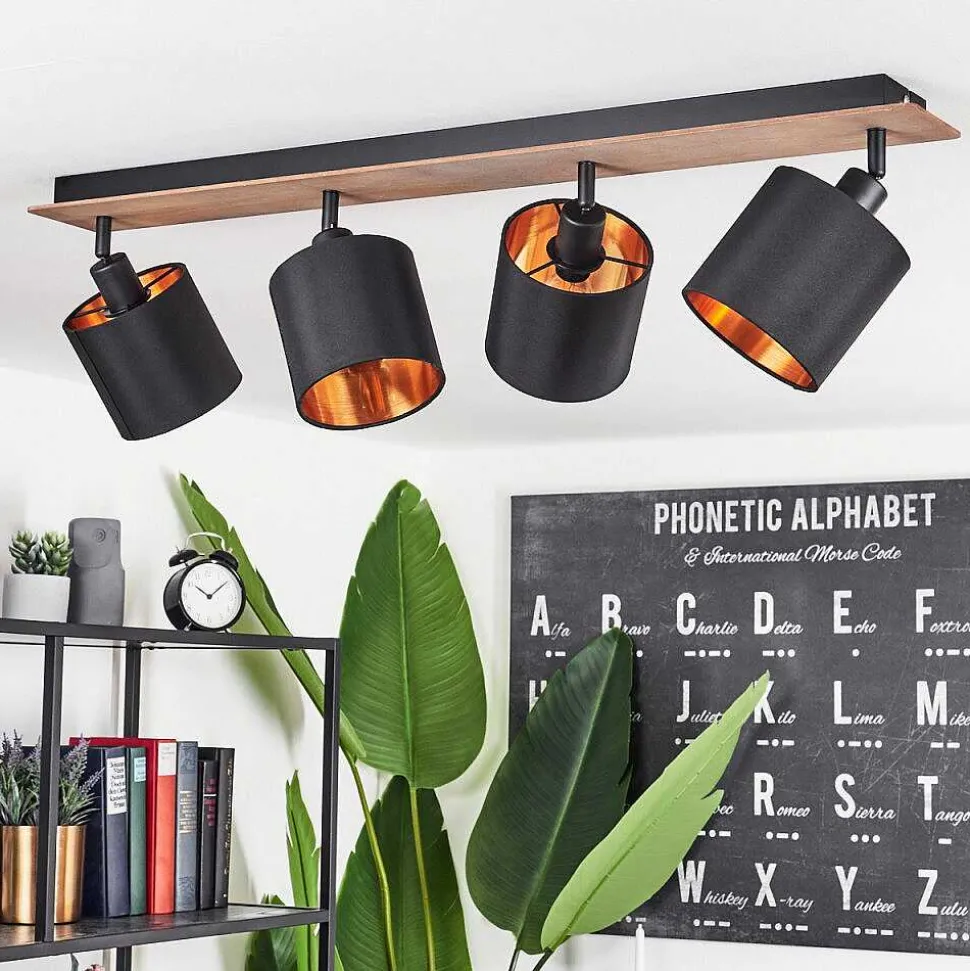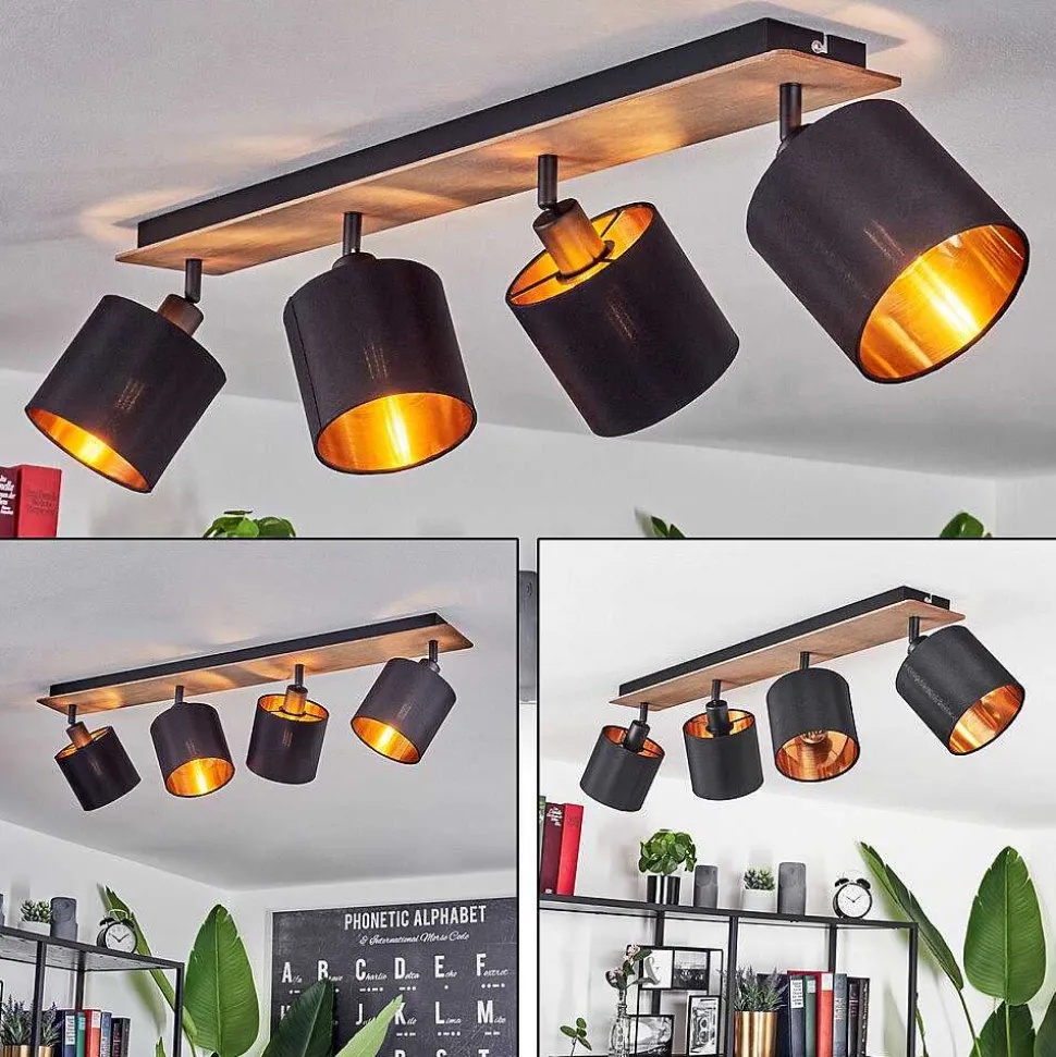 Plafonnier Salmi Led Couleur Bois, Noir, Blanc, 1 Lumiere, Telecommandes