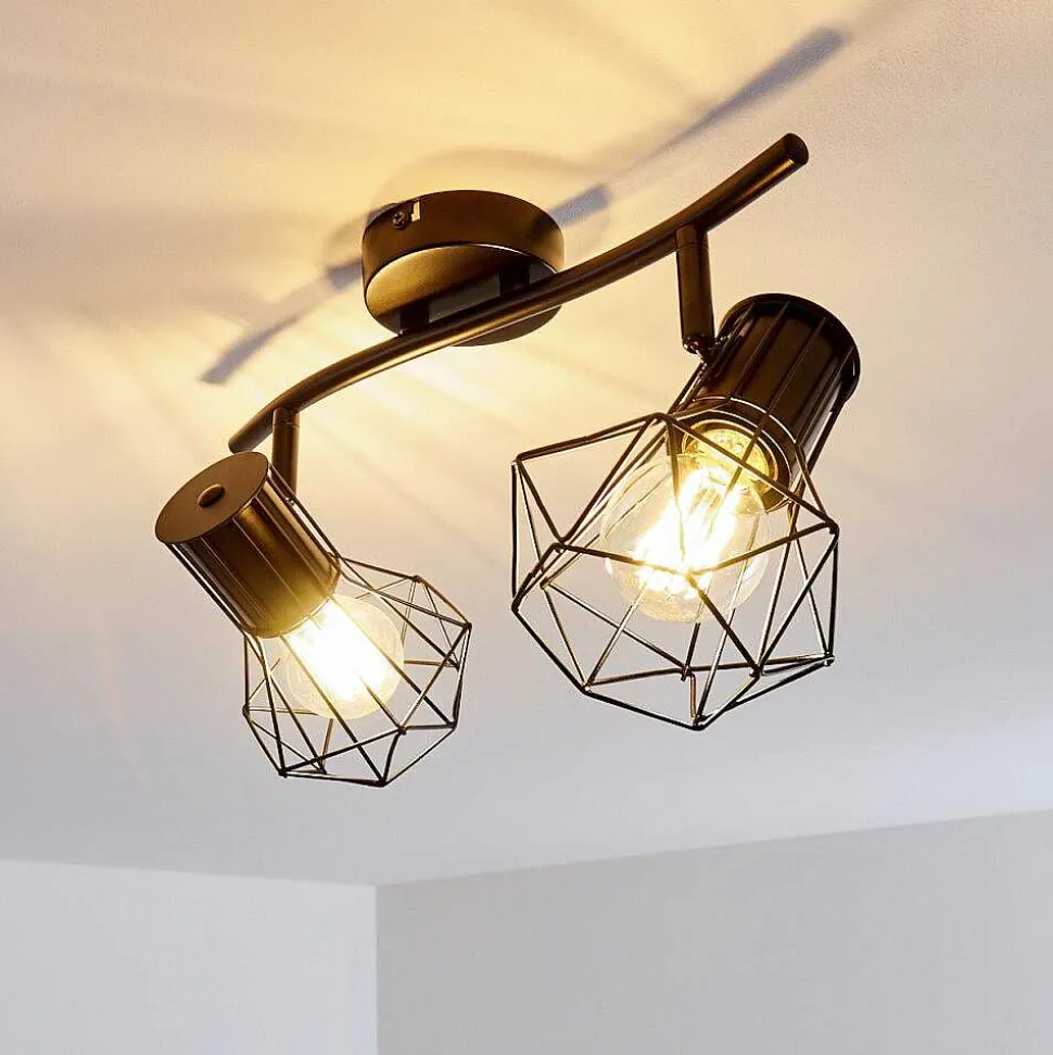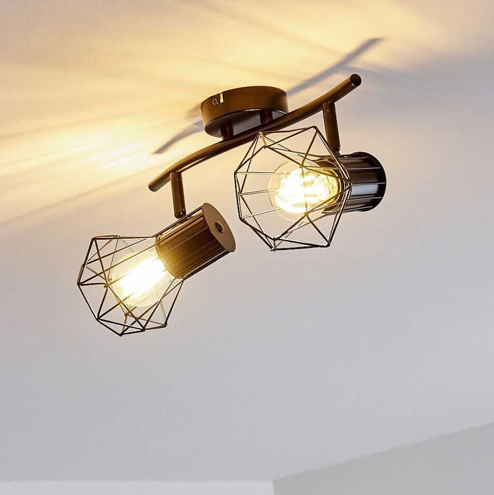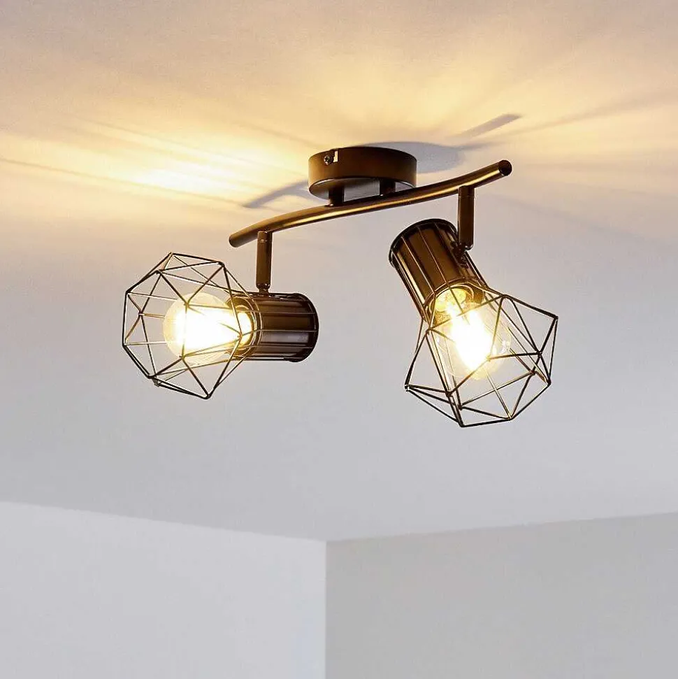 Plafonnier Salmi Led Brun, Couleur Bois, Noir, 1 Lumiere, Telecommandes