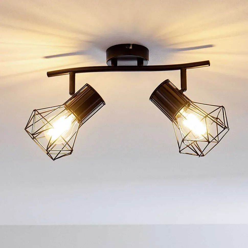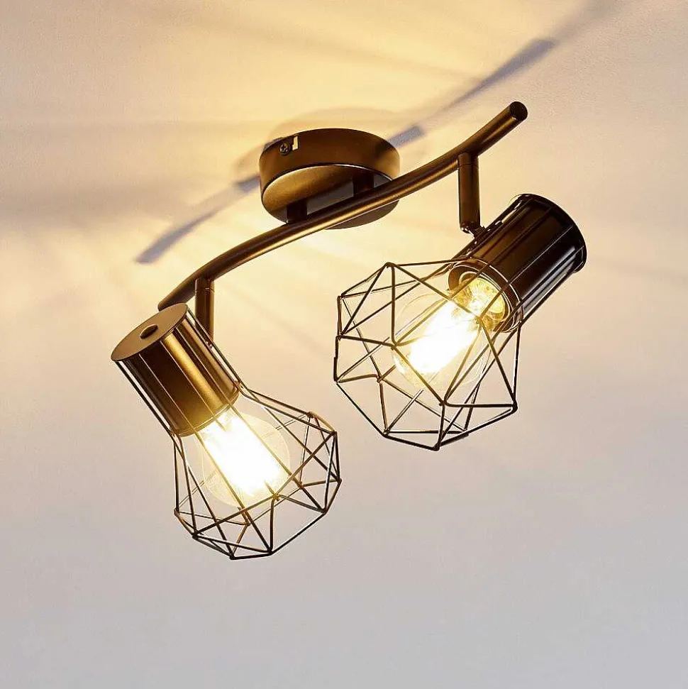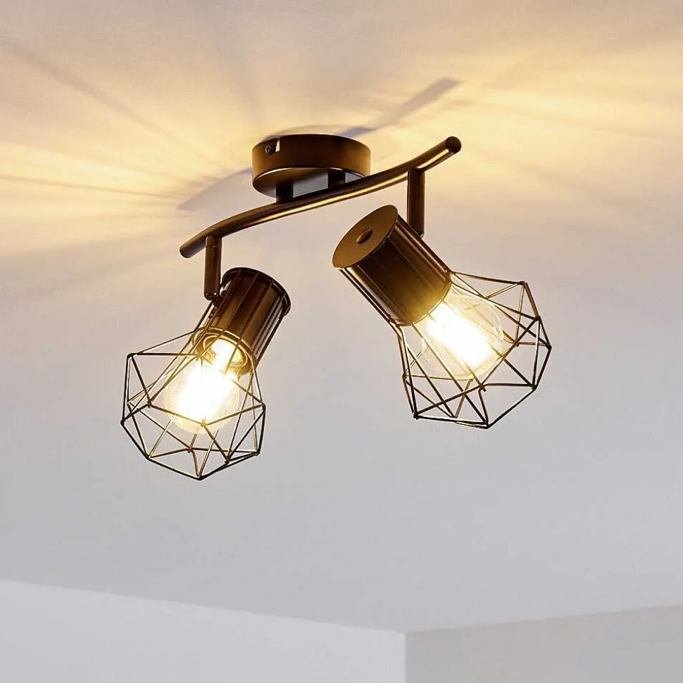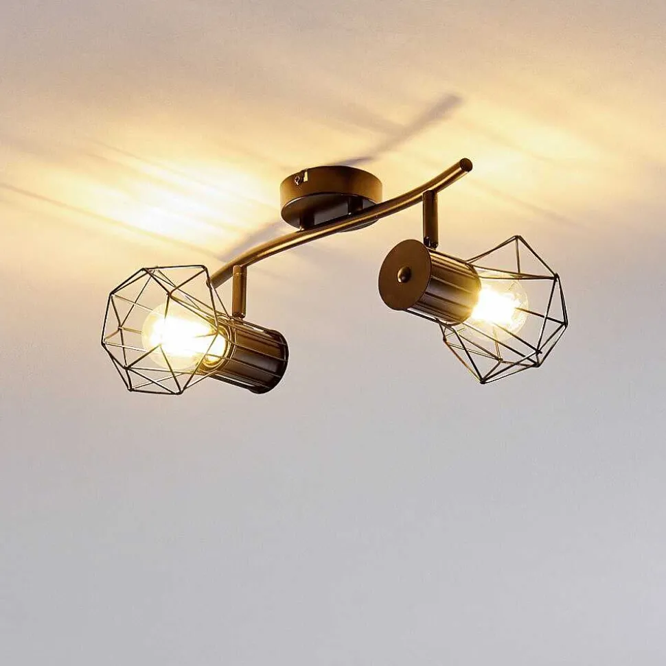 Plafonnier Salmi Led Brun, Couleur Bois, Noir, 1 Lumiere, Telecommandes