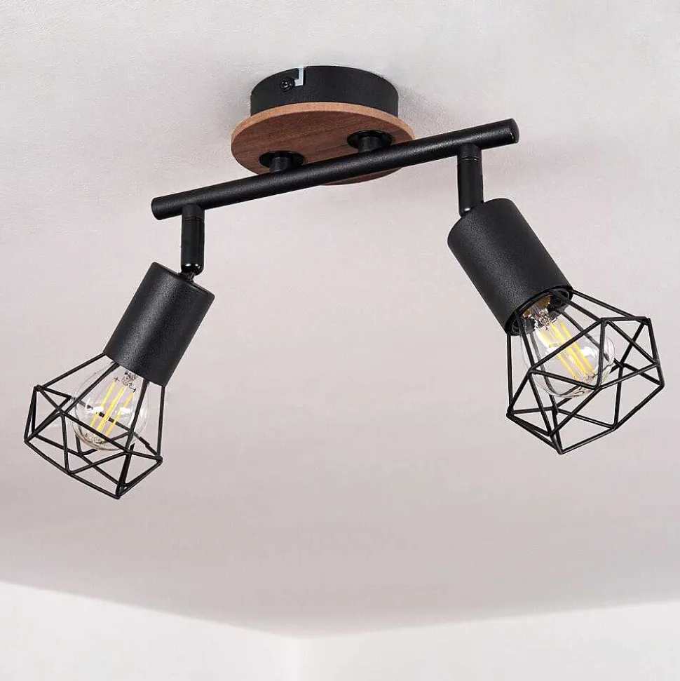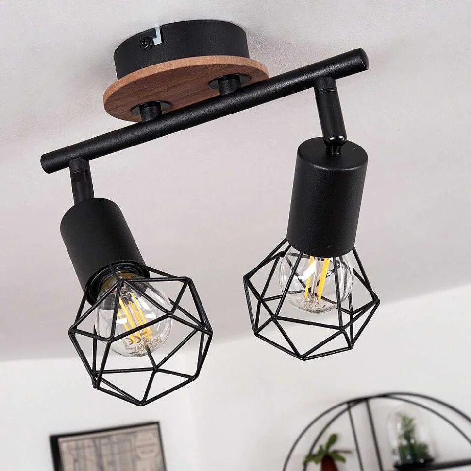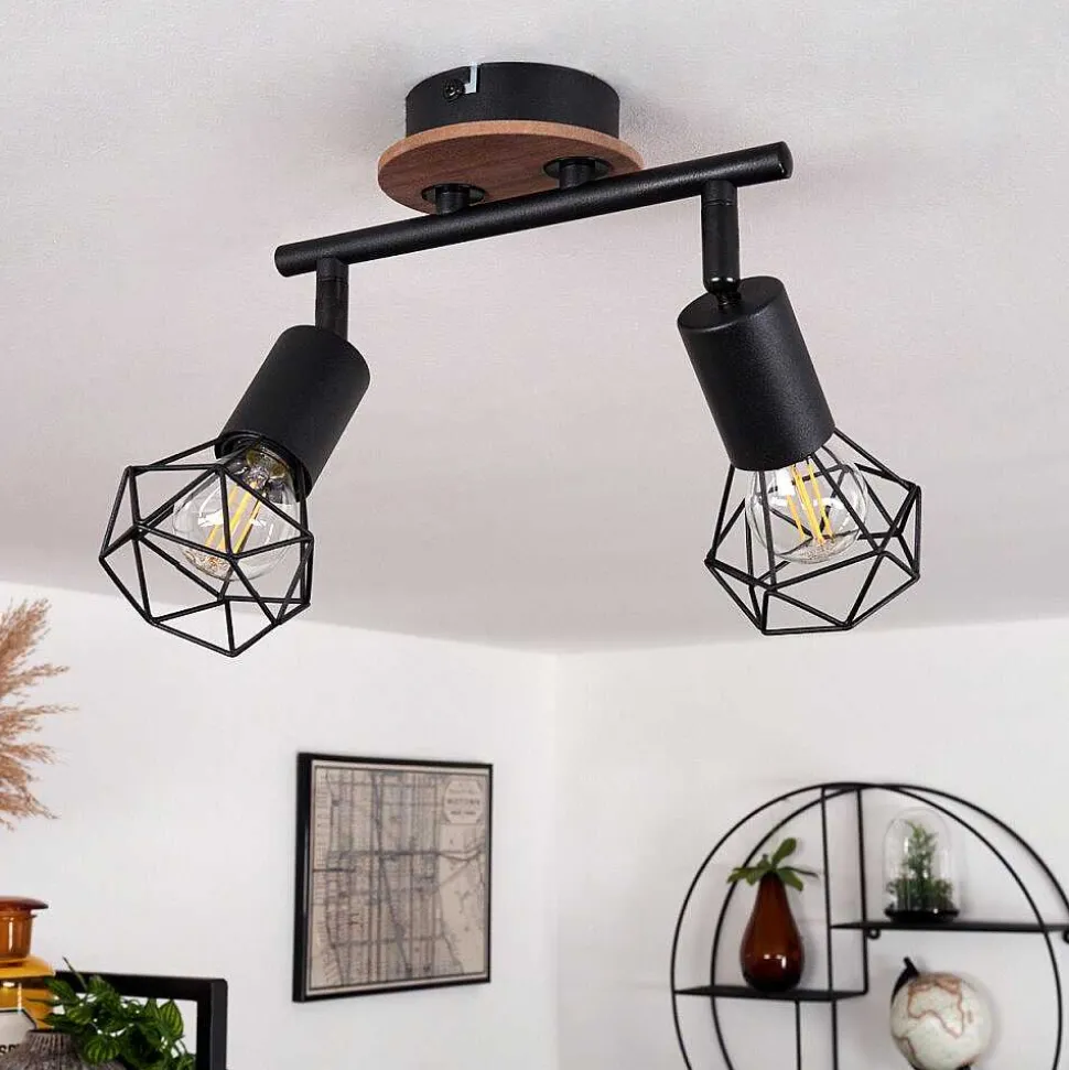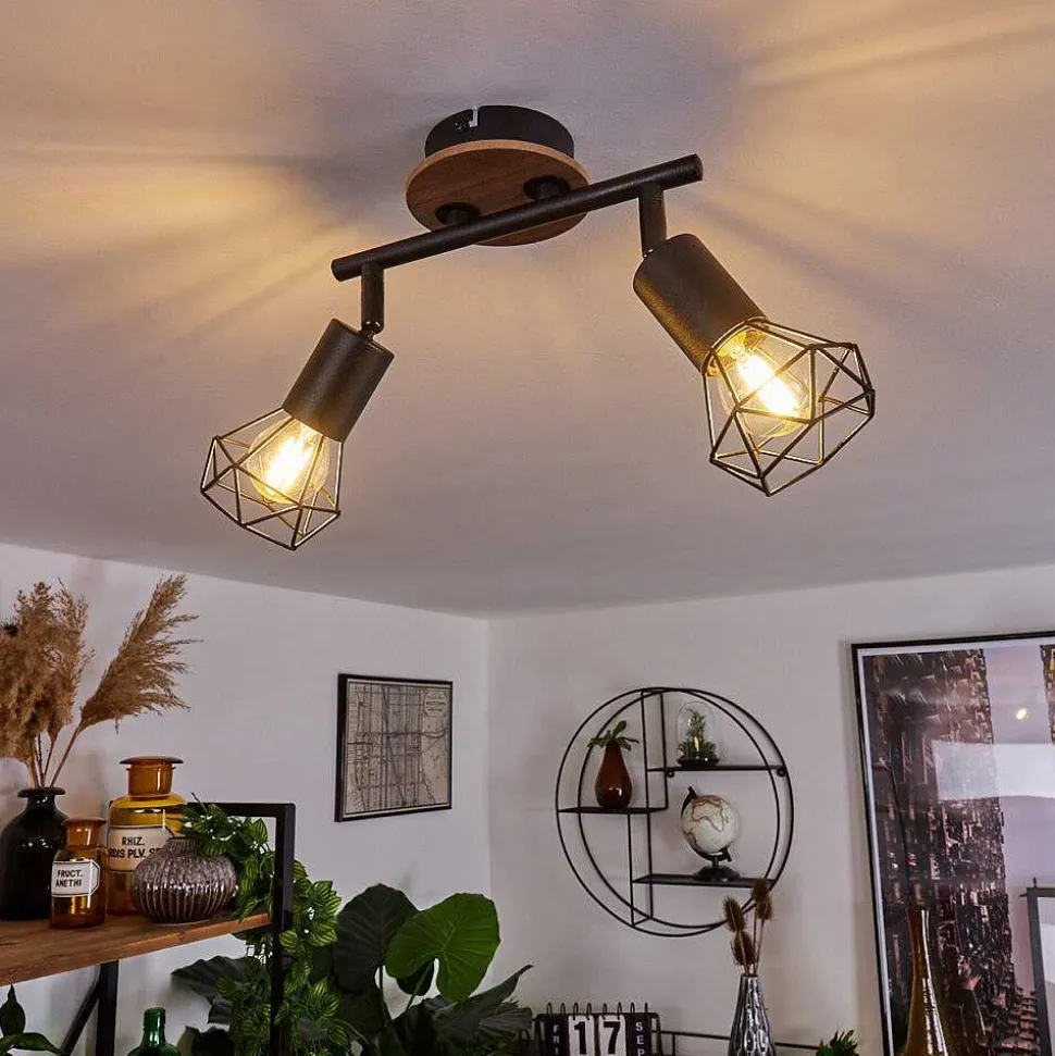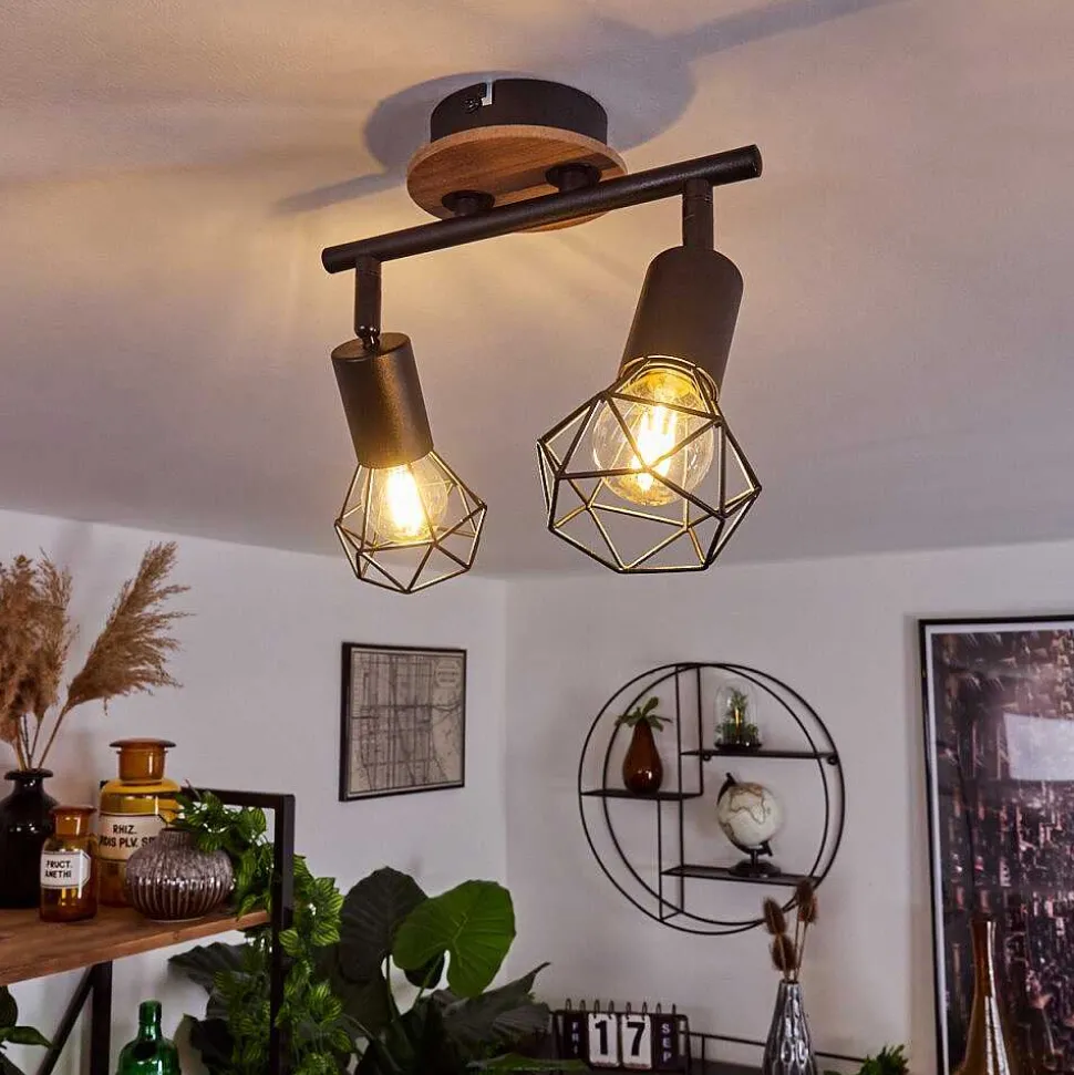 Plafonnier Baripada Bois Fonce, Noir, 2 Lumieres