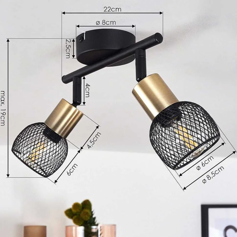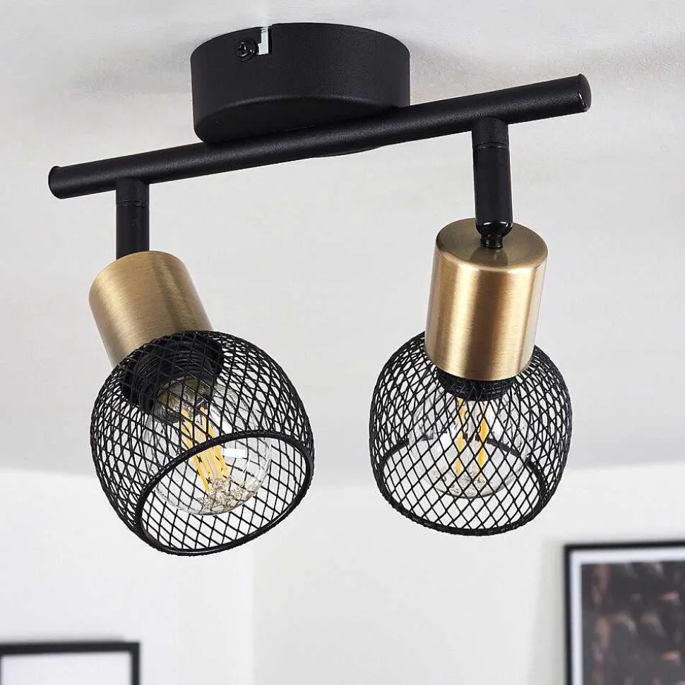 Plafonnier Cairns Vieux Laiton, Noir, 2 Lumieres