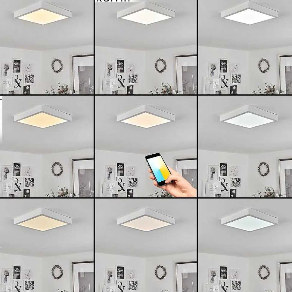 Plafonnier Sani Led Blanc, 1 Lumiere, Telecommandes, Changeur De Couleurs