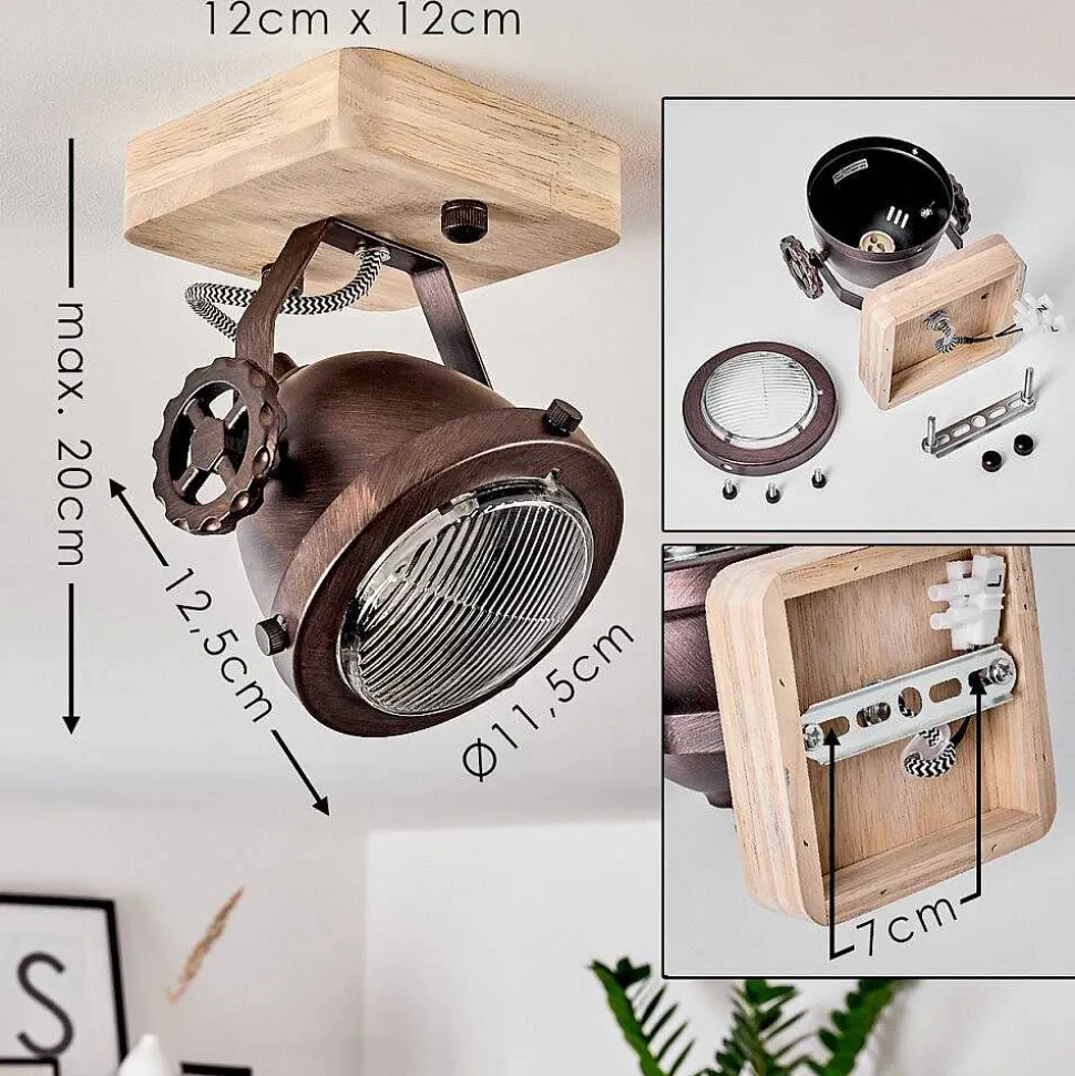Plafonnier Herford Bois Clair, Cuivre, 1 Lumiere