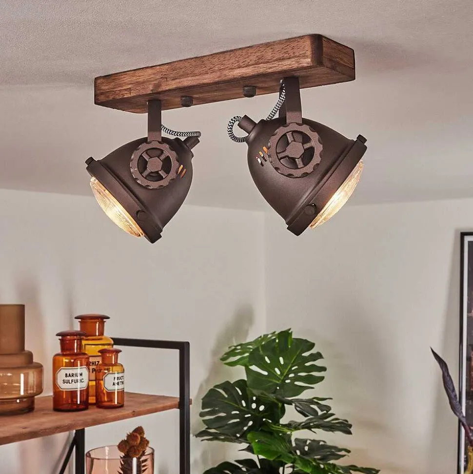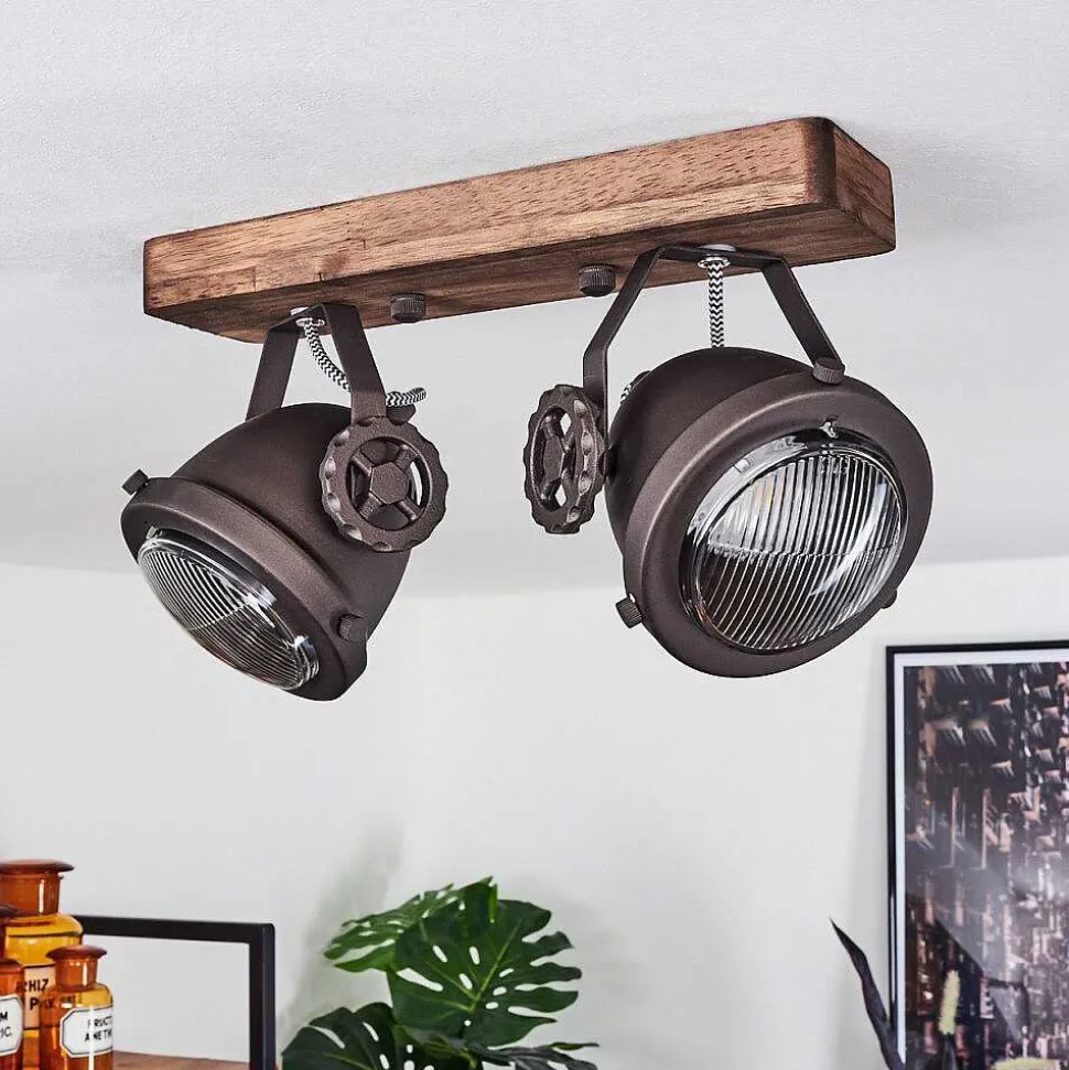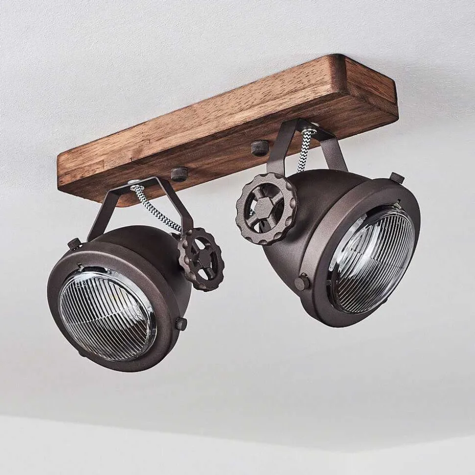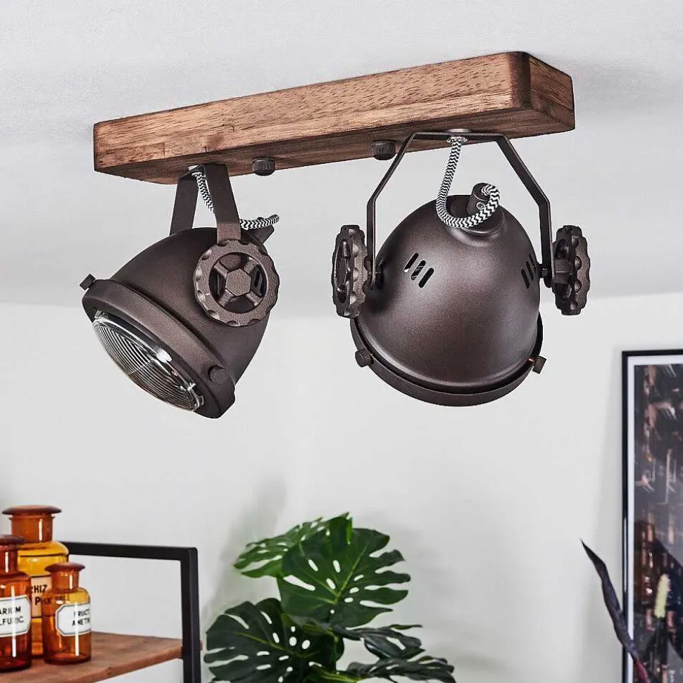 Plafonnier Salmi Led Brun, Couleur Bois, Noir, 1 Lumiere, Telecommandes