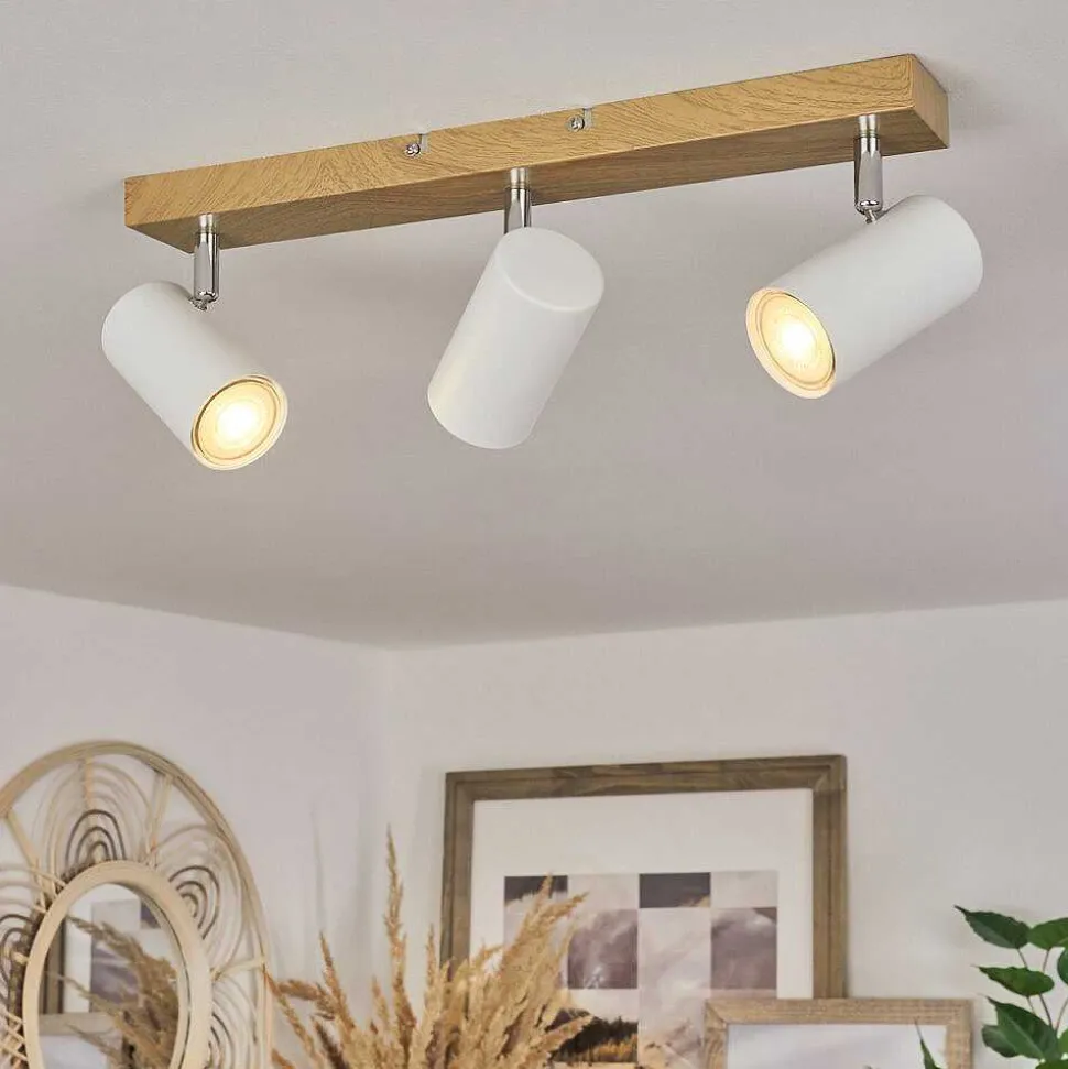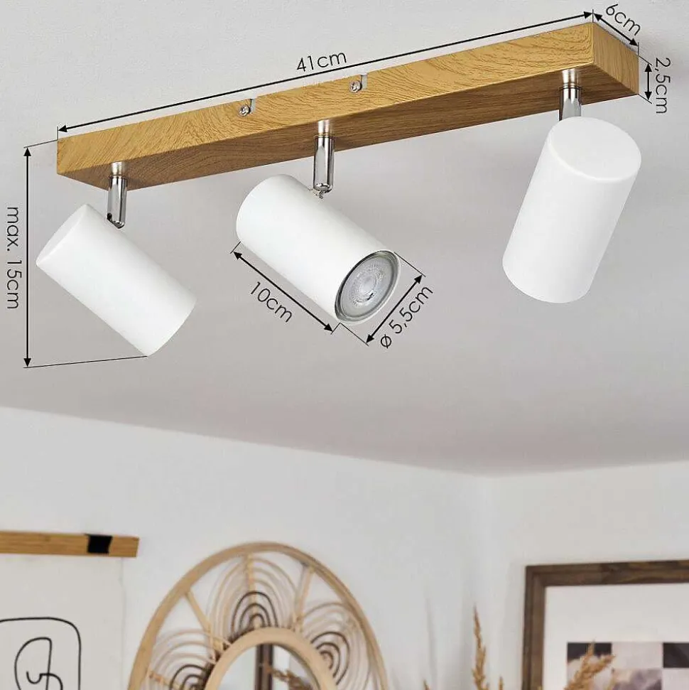 Plafonnier Salmi Led Brun, Couleur Bois, Noir, 1 Lumiere, Telecommandes