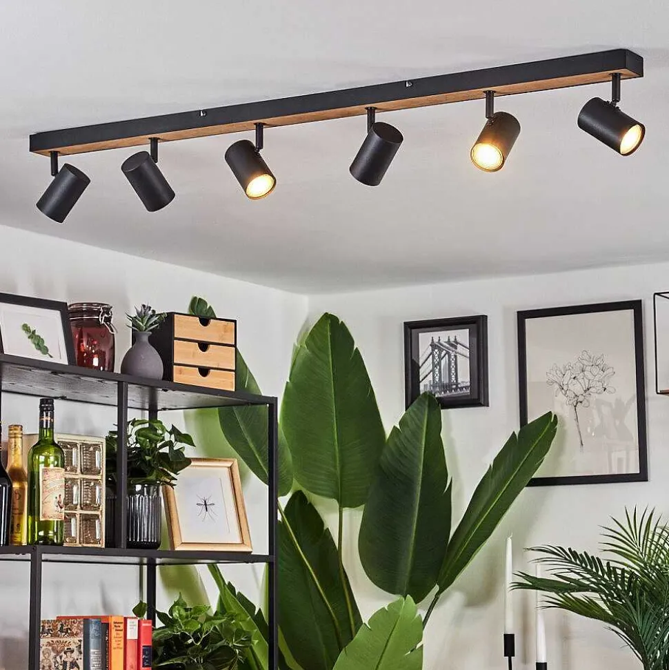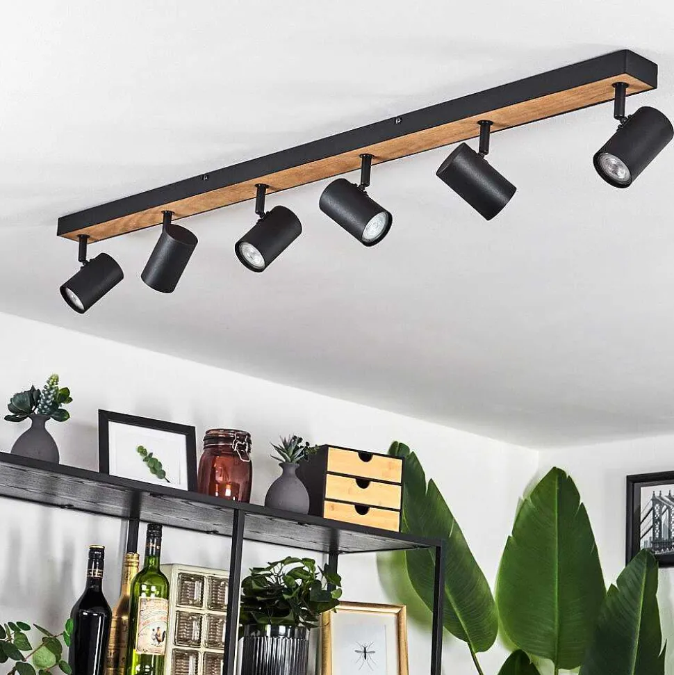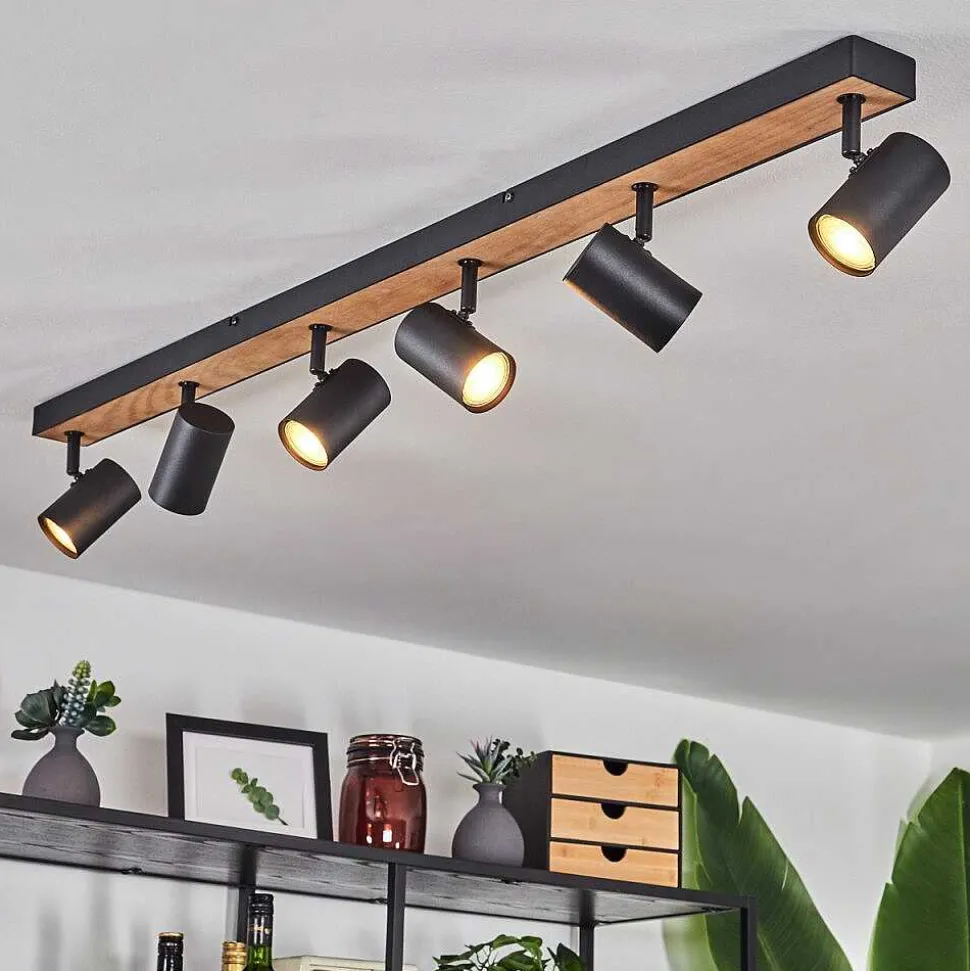 Plafonnier Salmi Led Brun, Couleur Bois, Noir, 1 Lumiere, Telecommandes