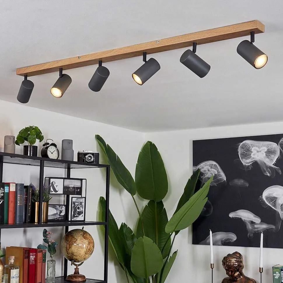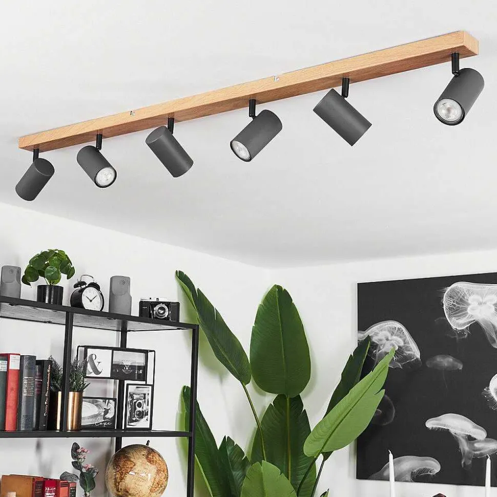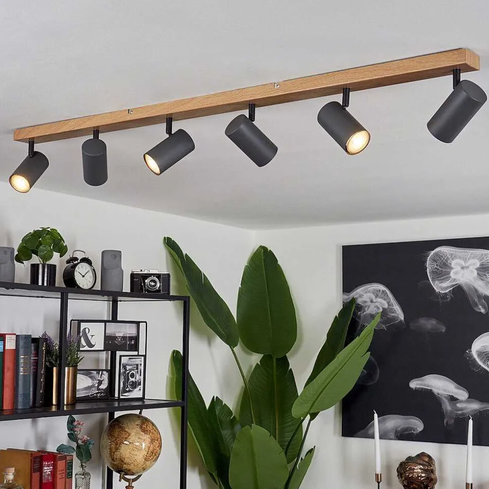 Plafonnier Salmi Led Couleur Bois, Noir, Blanc, 1 Lumiere, Telecommandes