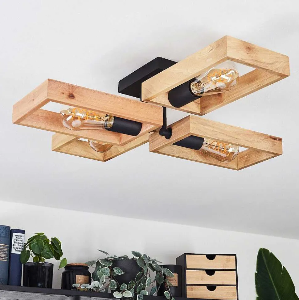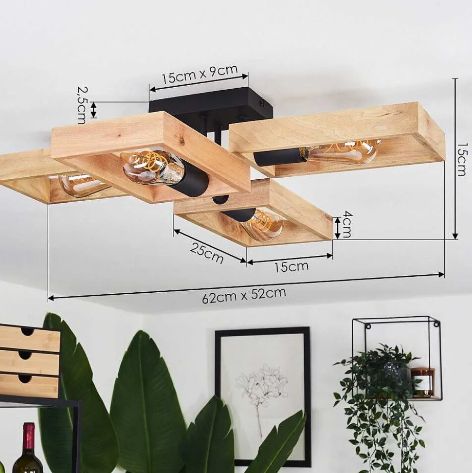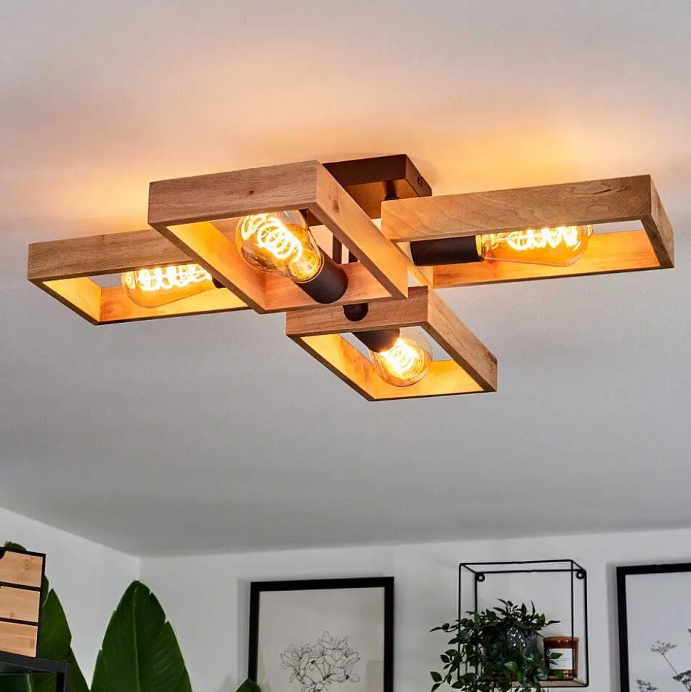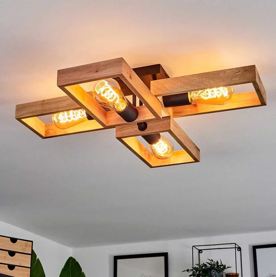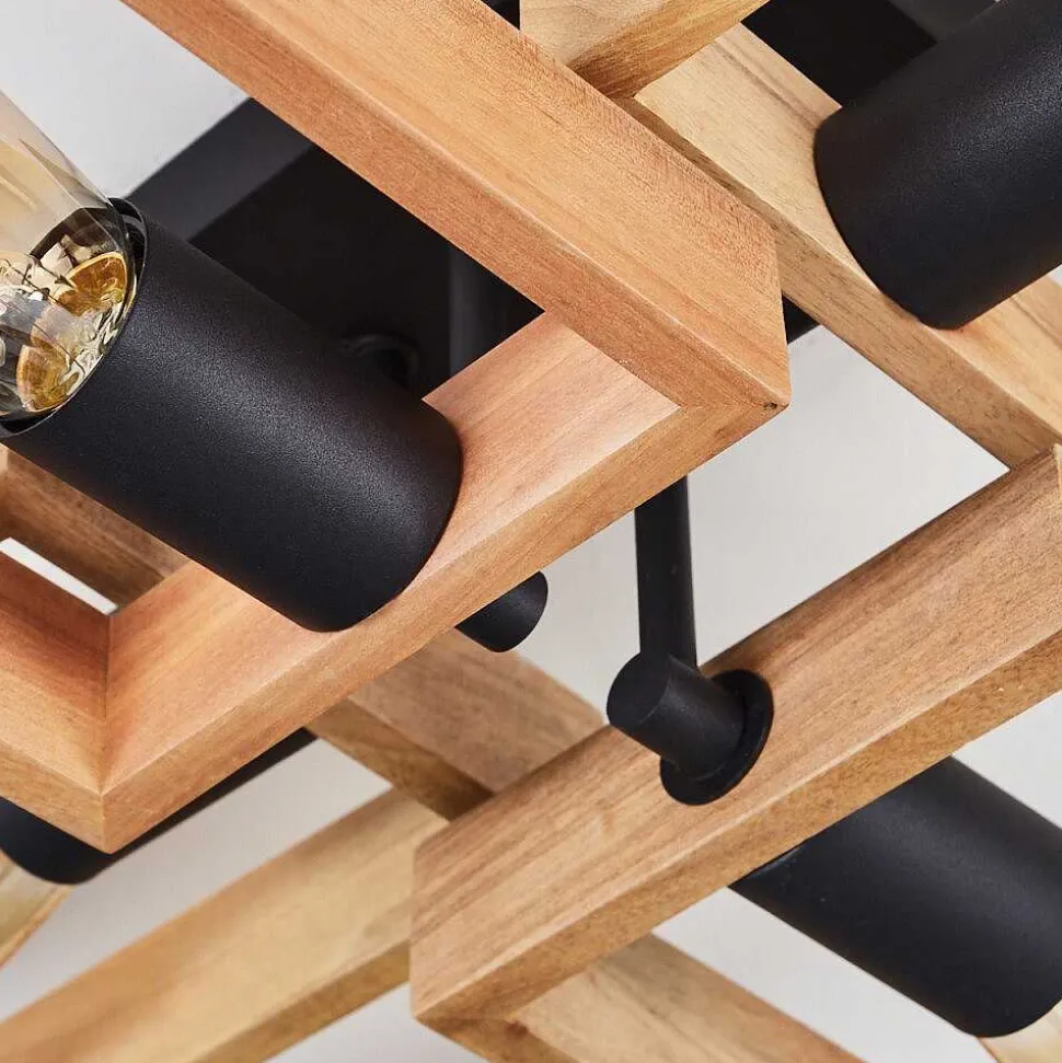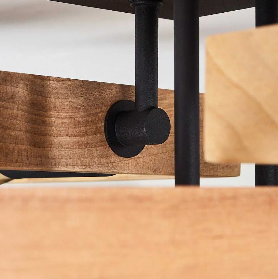 Plafonnier Salmi Led Brun, Couleur Bois, Noir, 1 Lumiere, Telecommandes