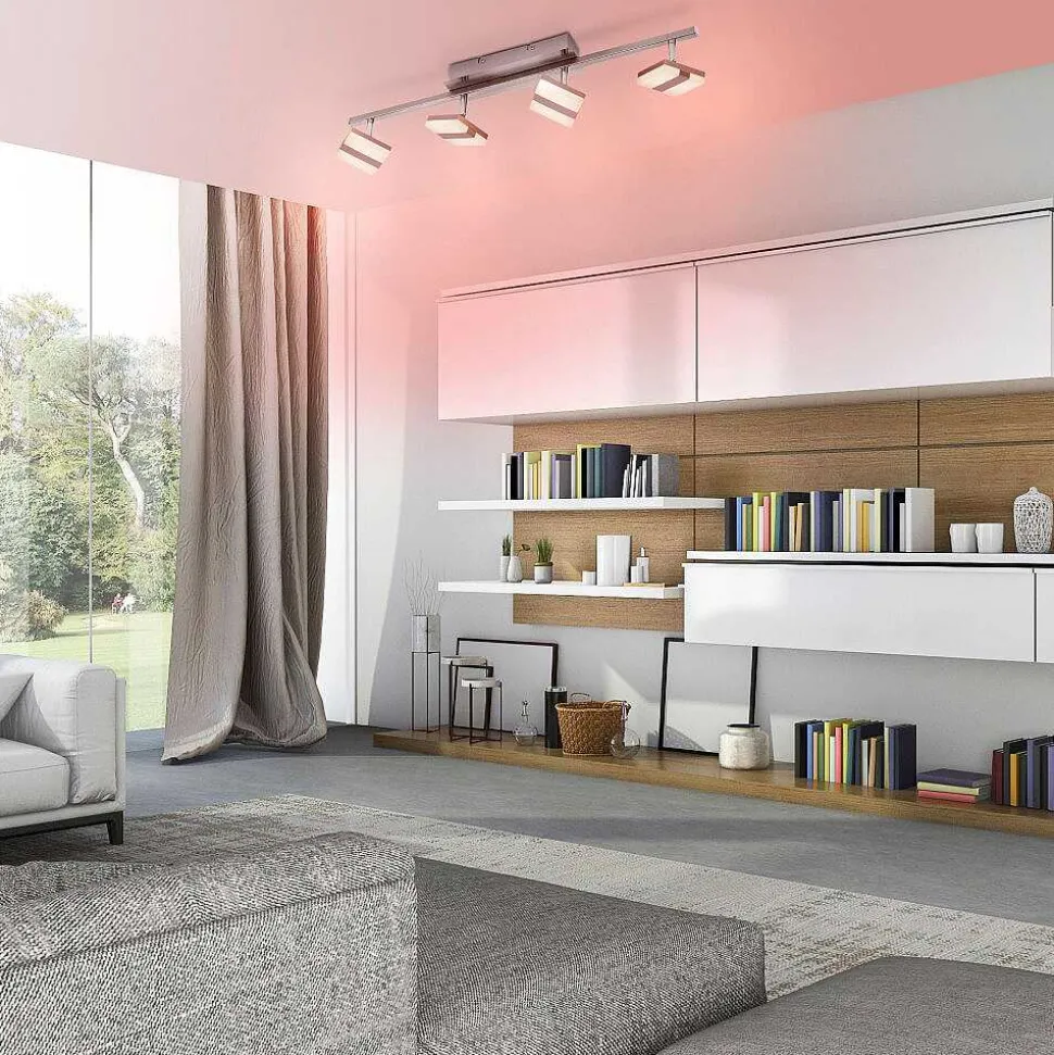 Plafonnier Leuchten-Direkt Sabi Led Nickel Mat, 6 Lumieres, Telecommandes, Changeur De Couleurs