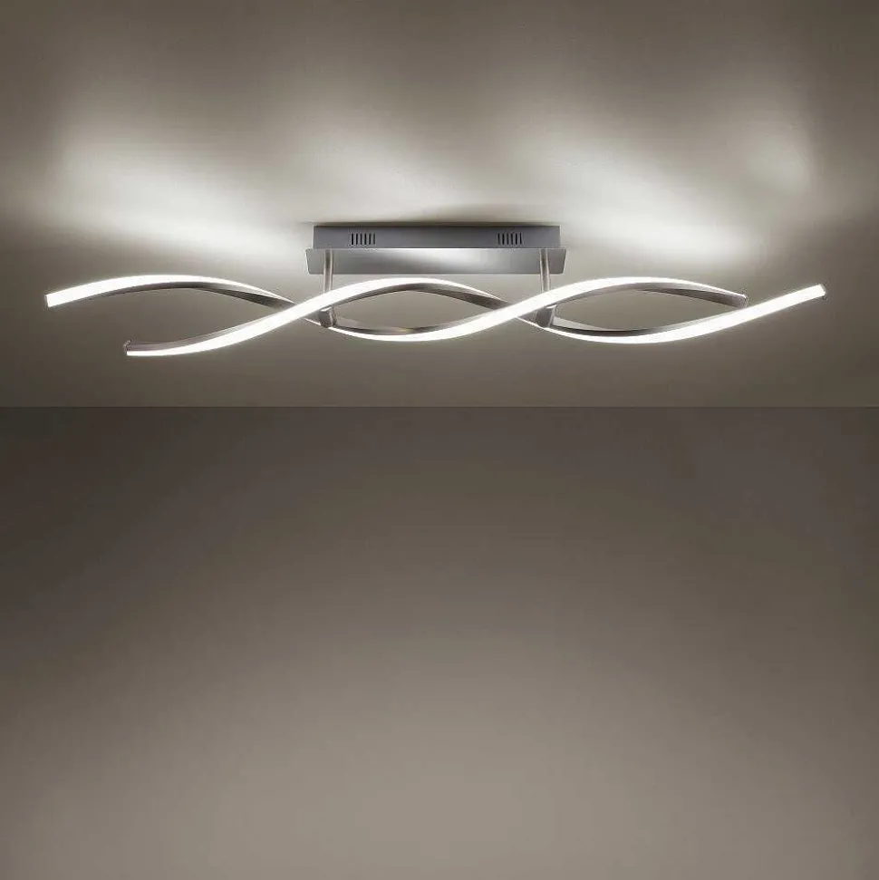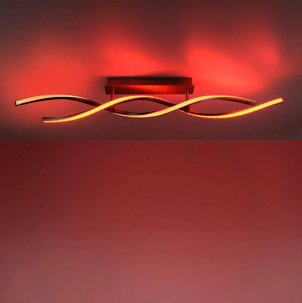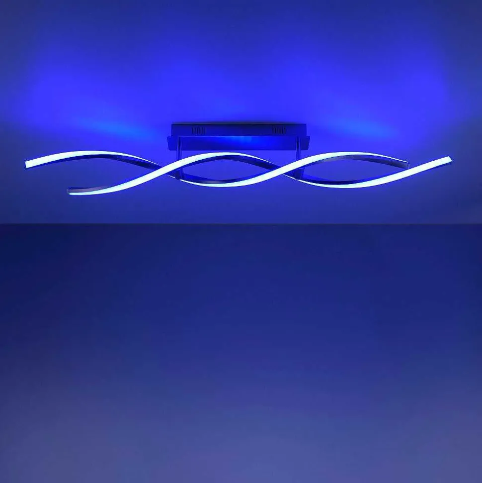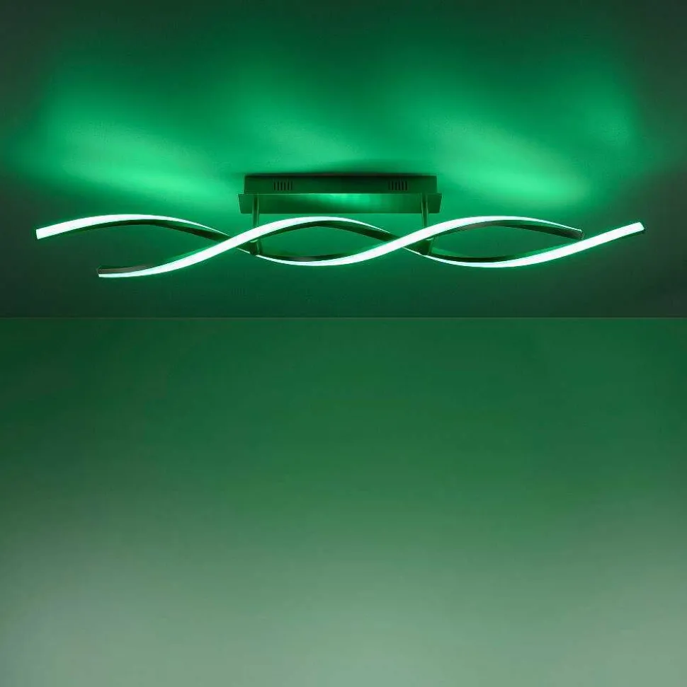 Plafonnier Cerejeiras Led Chrome, 2 Lumieres, Telecommandes, Changeur De Couleurs