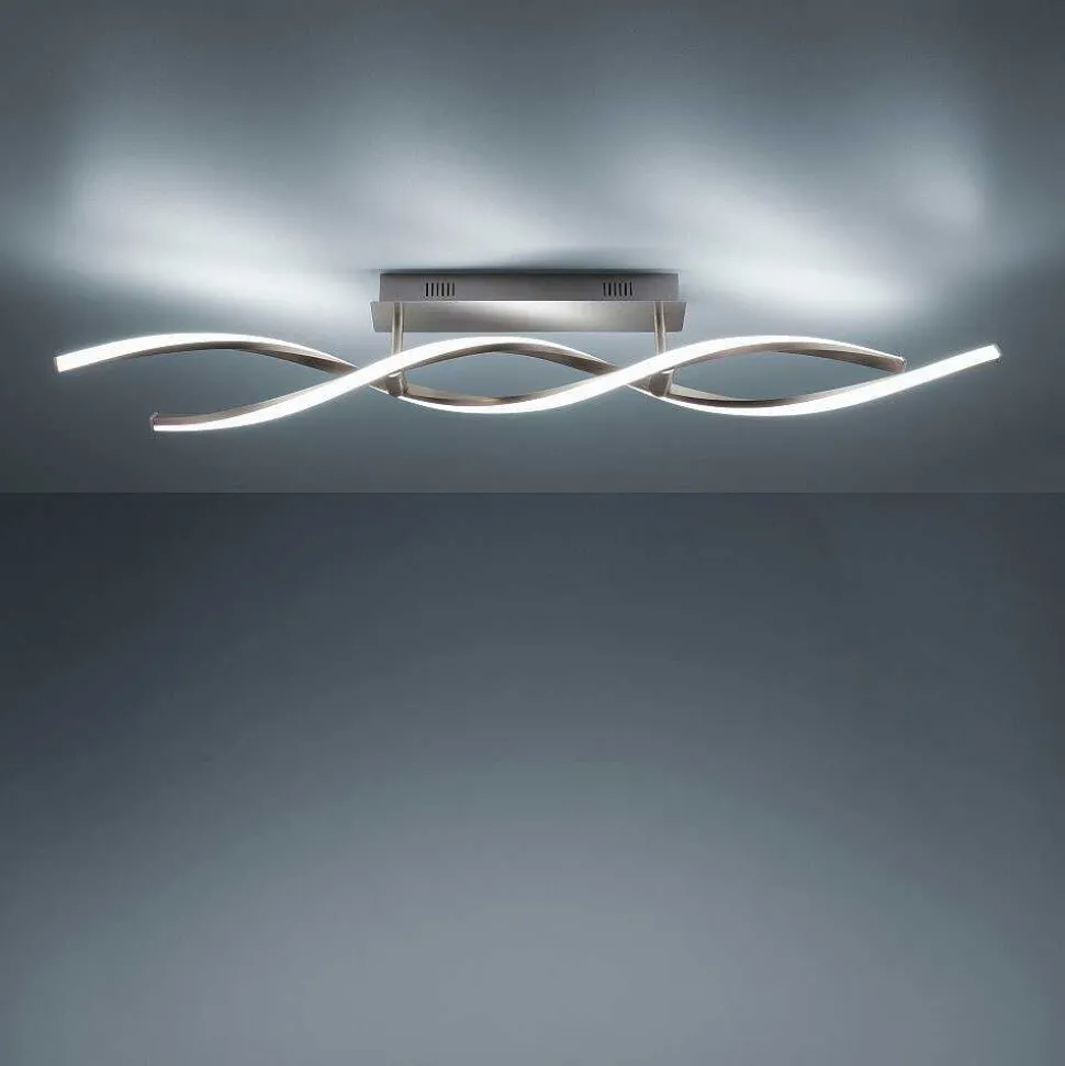 Plafonnier Leuchten-Direkt Sabi Led Nickel Mat, 6 Lumieres, Telecommandes, Changeur De Couleurs