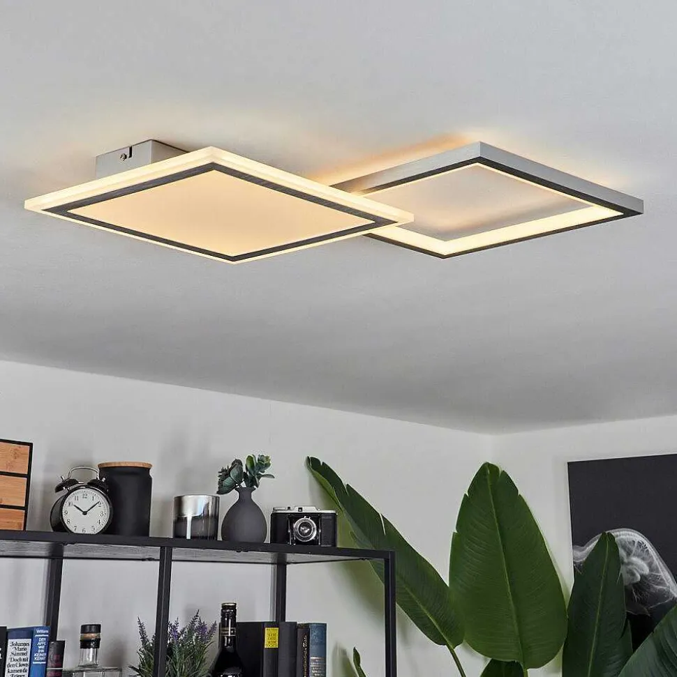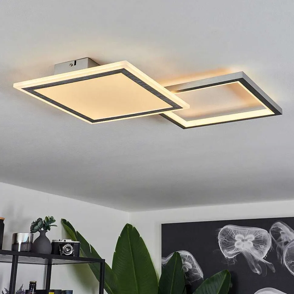 Plafonnier Salmi Led Couleur Bois, Noir, Blanc, 1 Lumiere, Telecommandes