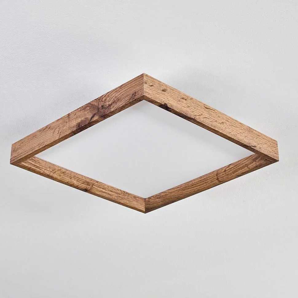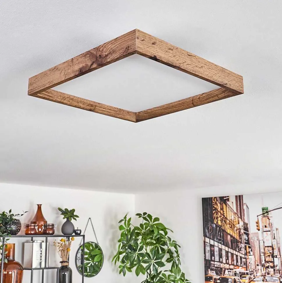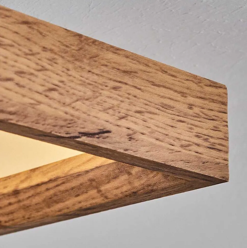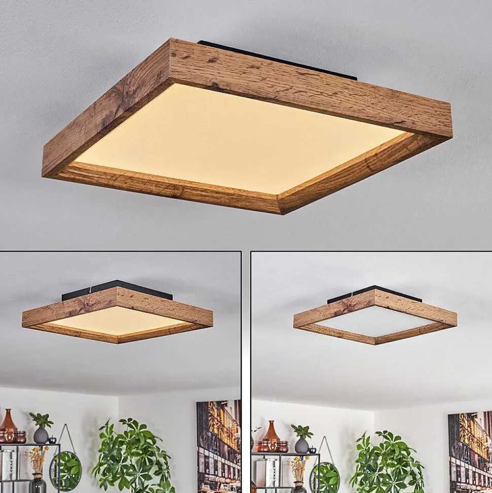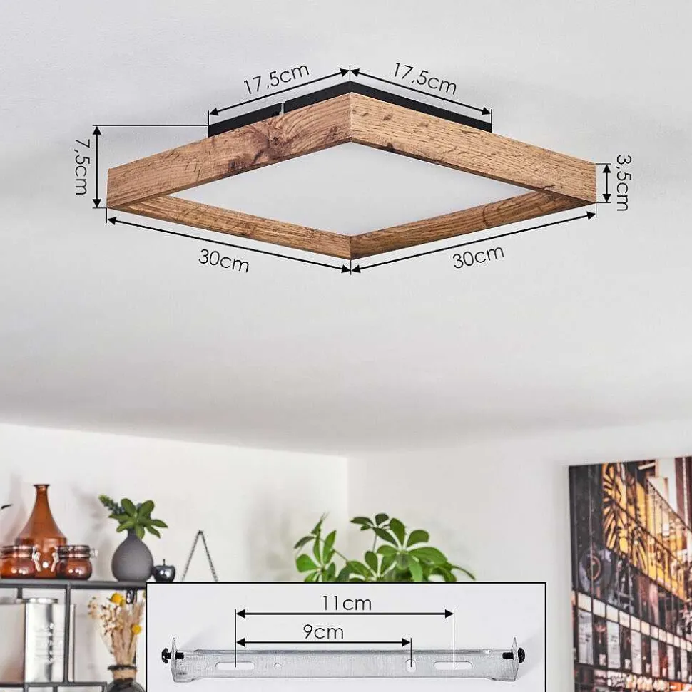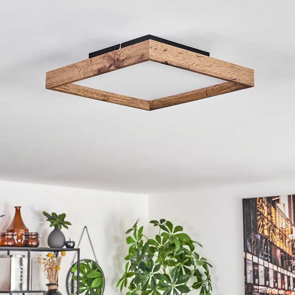 Plafonnier Salmi Led Brun, Couleur Bois, Noir, 1 Lumiere, Telecommandes