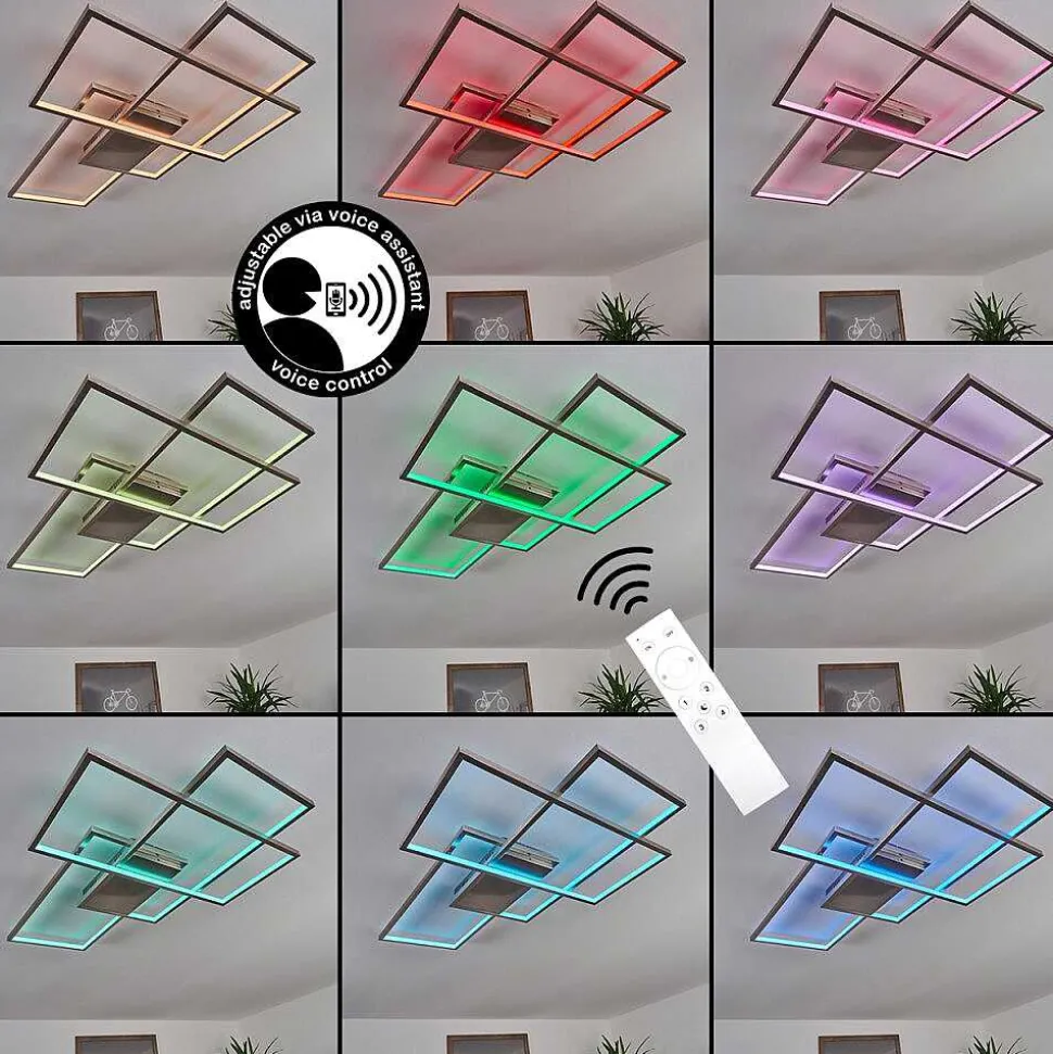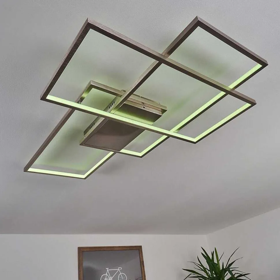 Plafonnier Salmi Led Brun, Couleur Bois, Noir, 1 Lumiere, Telecommandes