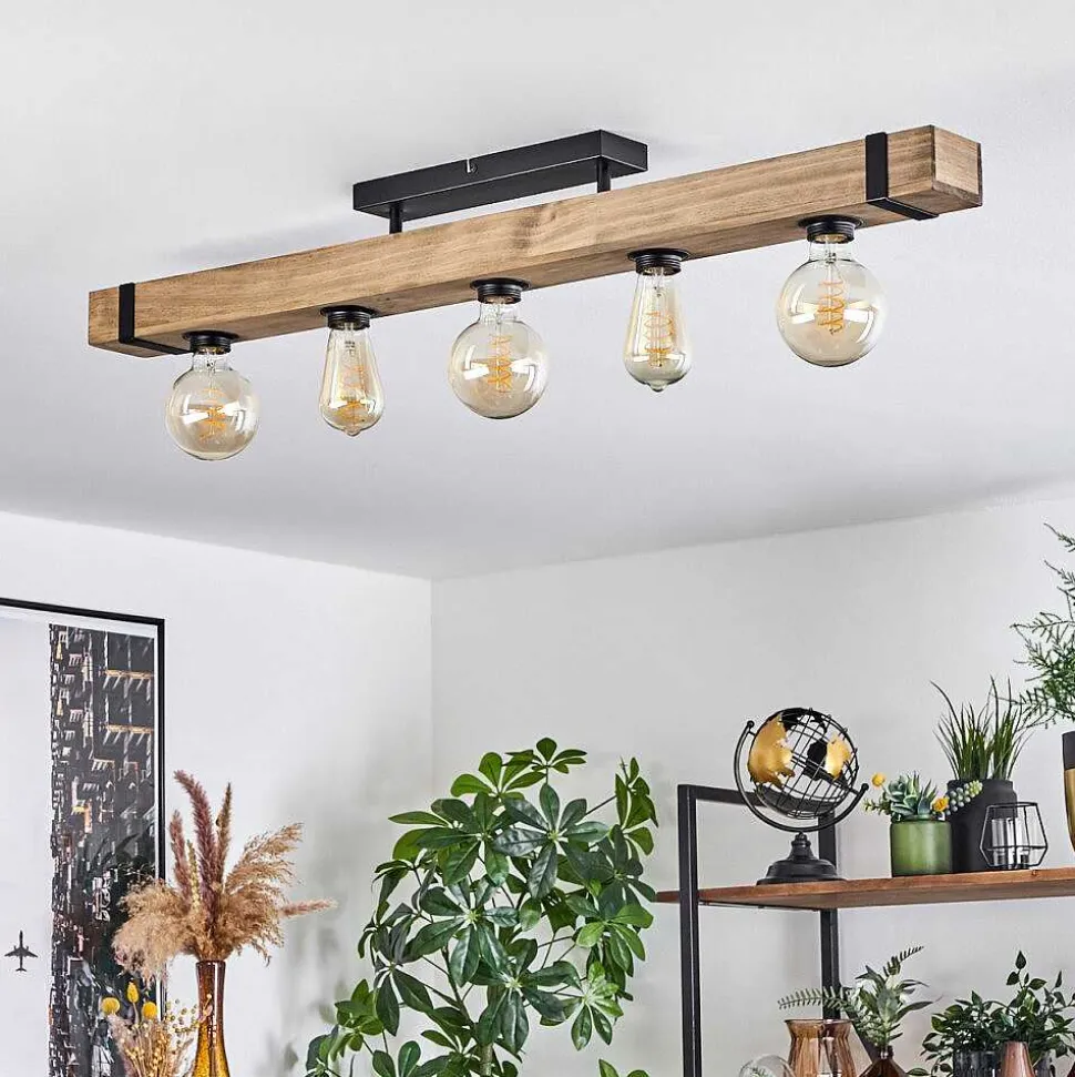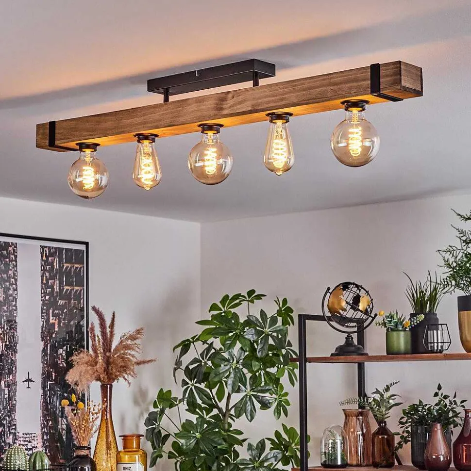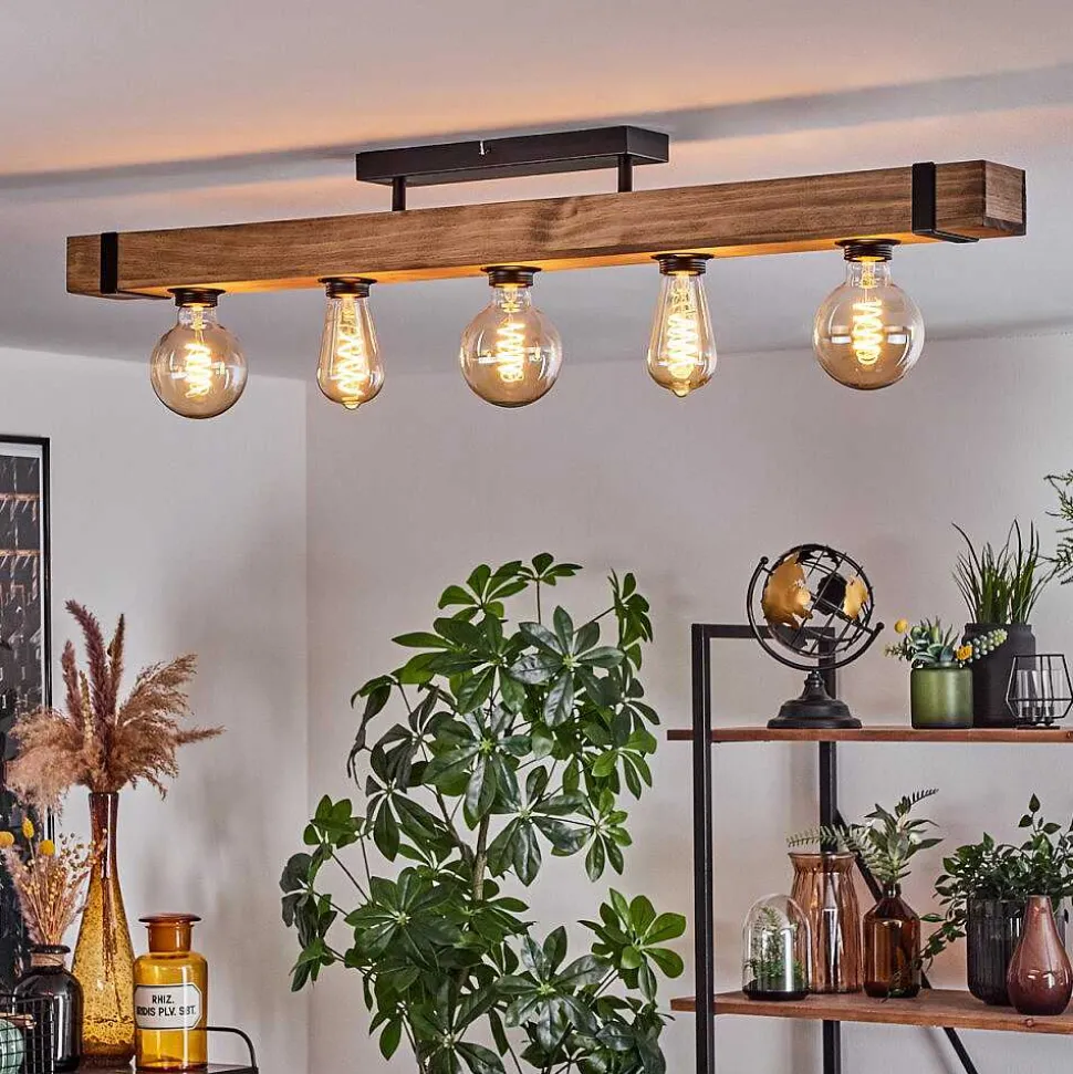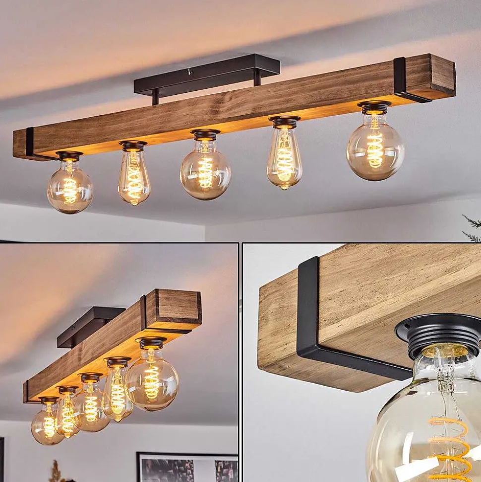 Plafonnier Salmi Led Couleur Bois, Noir, Blanc, 1 Lumiere, Telecommandes