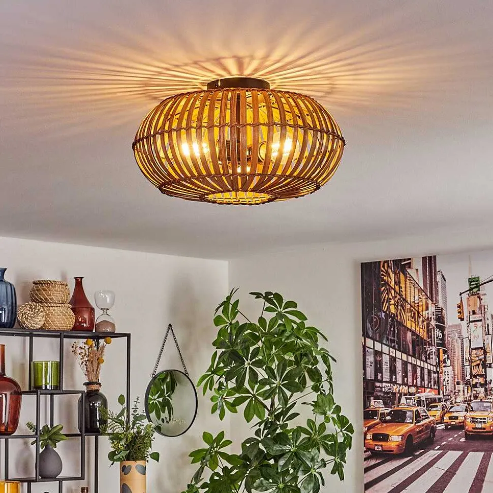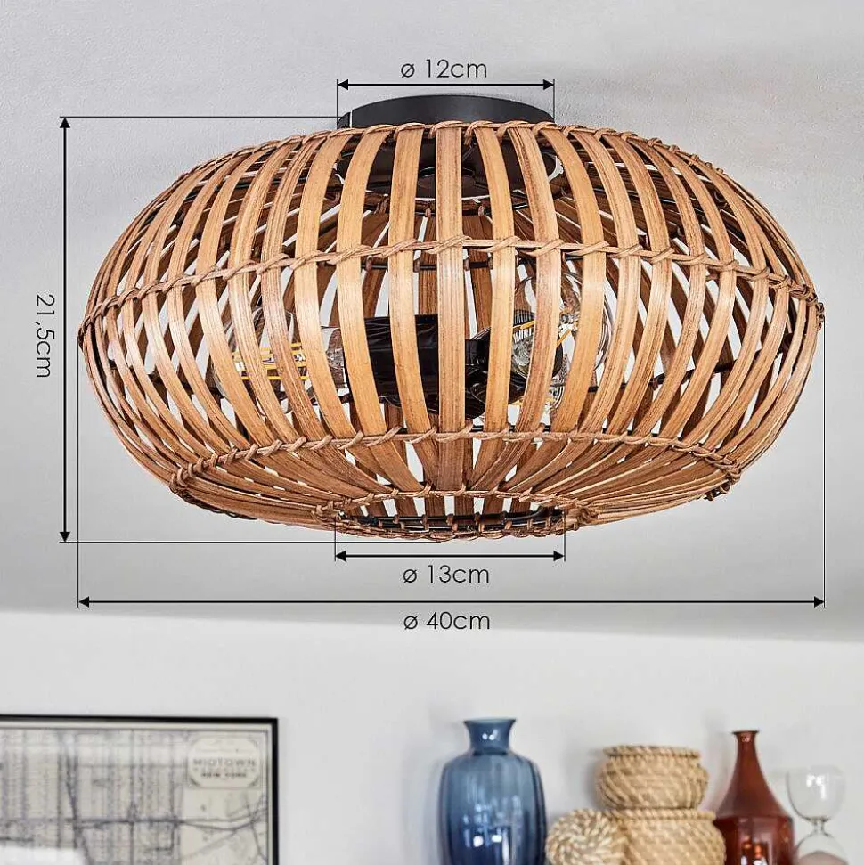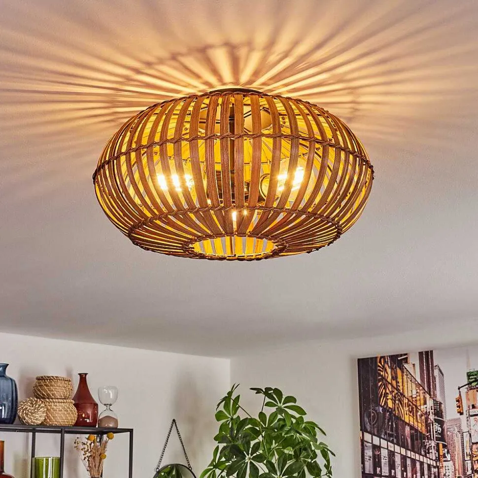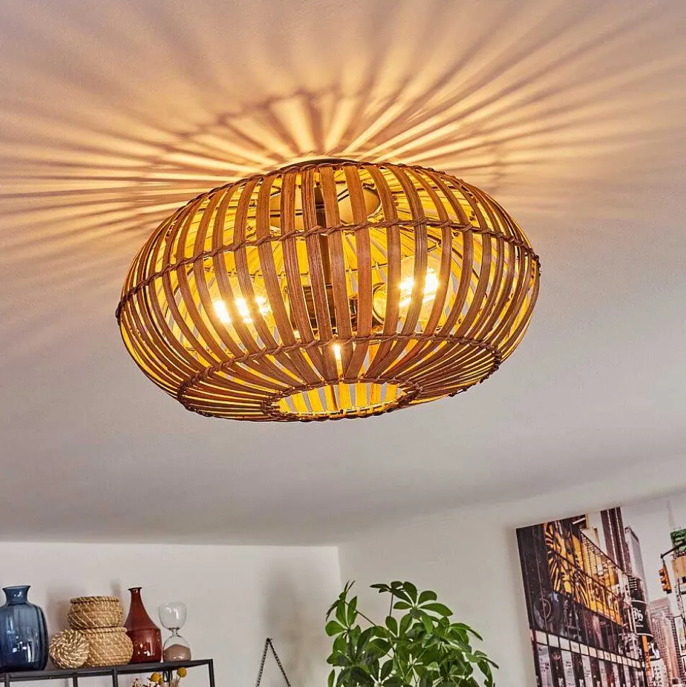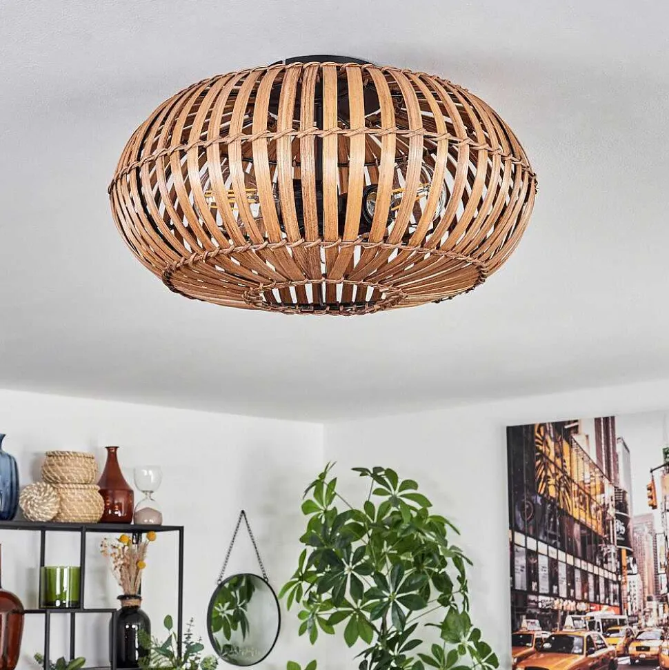 Plafonnier Salmi Led Brun, Couleur Bois, Noir, 1 Lumiere, Telecommandes