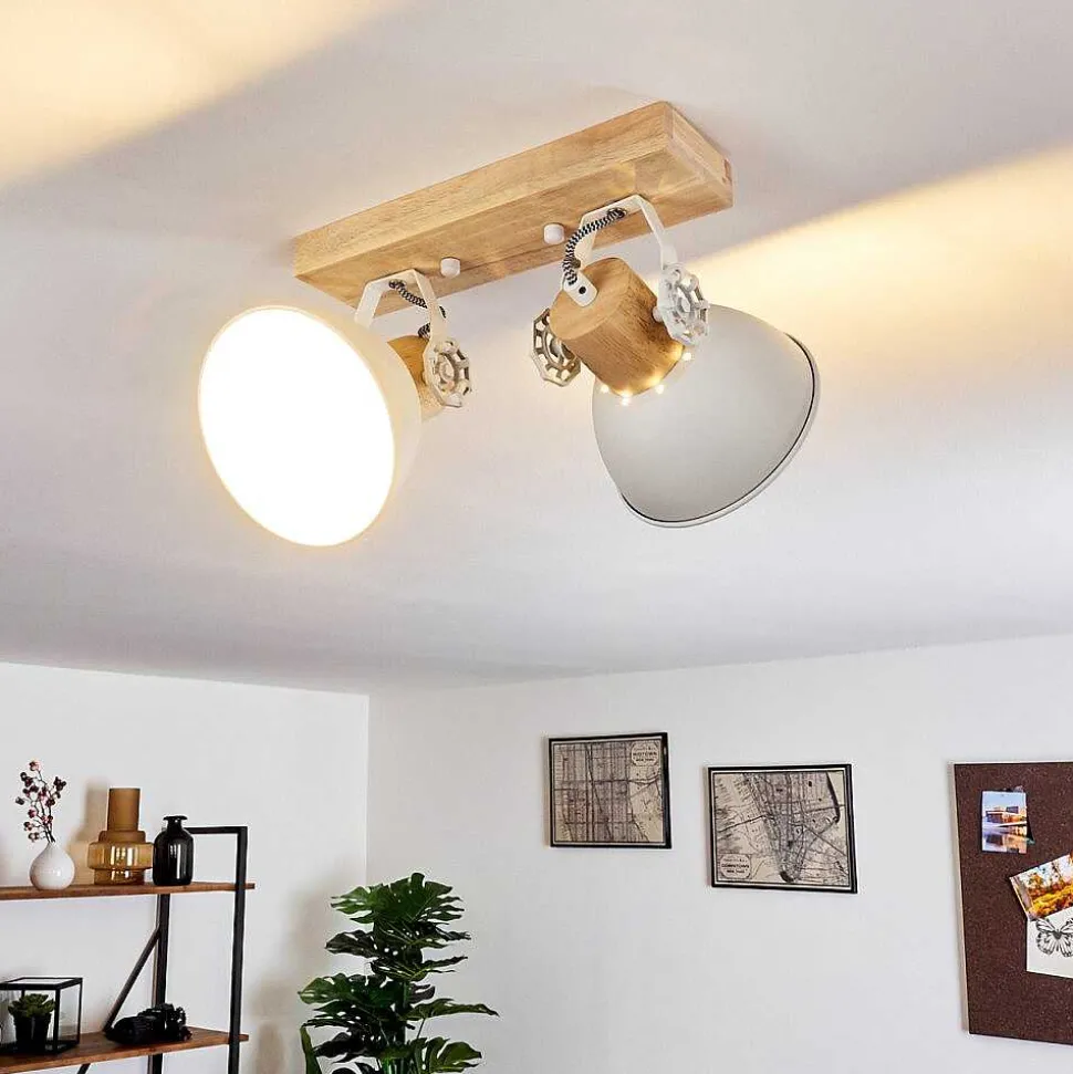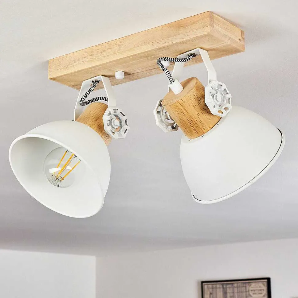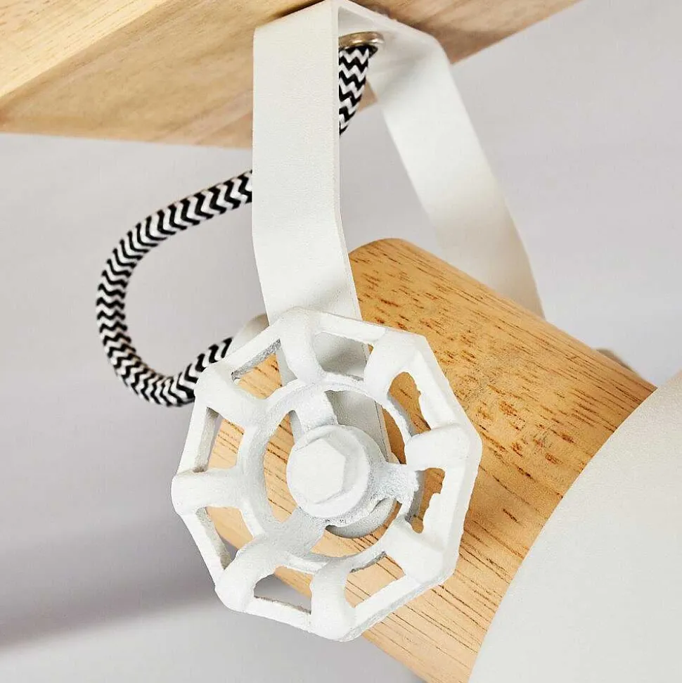 Plafonnier Salmi Led Couleur Bois, Noir, Blanc, 1 Lumiere, Telecommandes