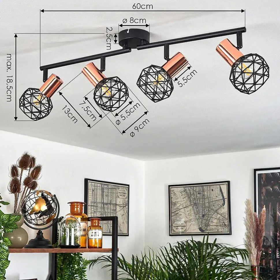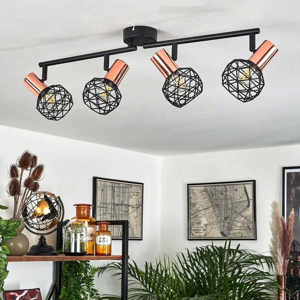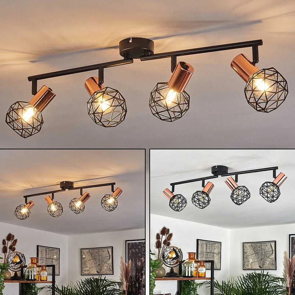 Plafonnier Palmira Cuivre, Noir, 4 Lumieres