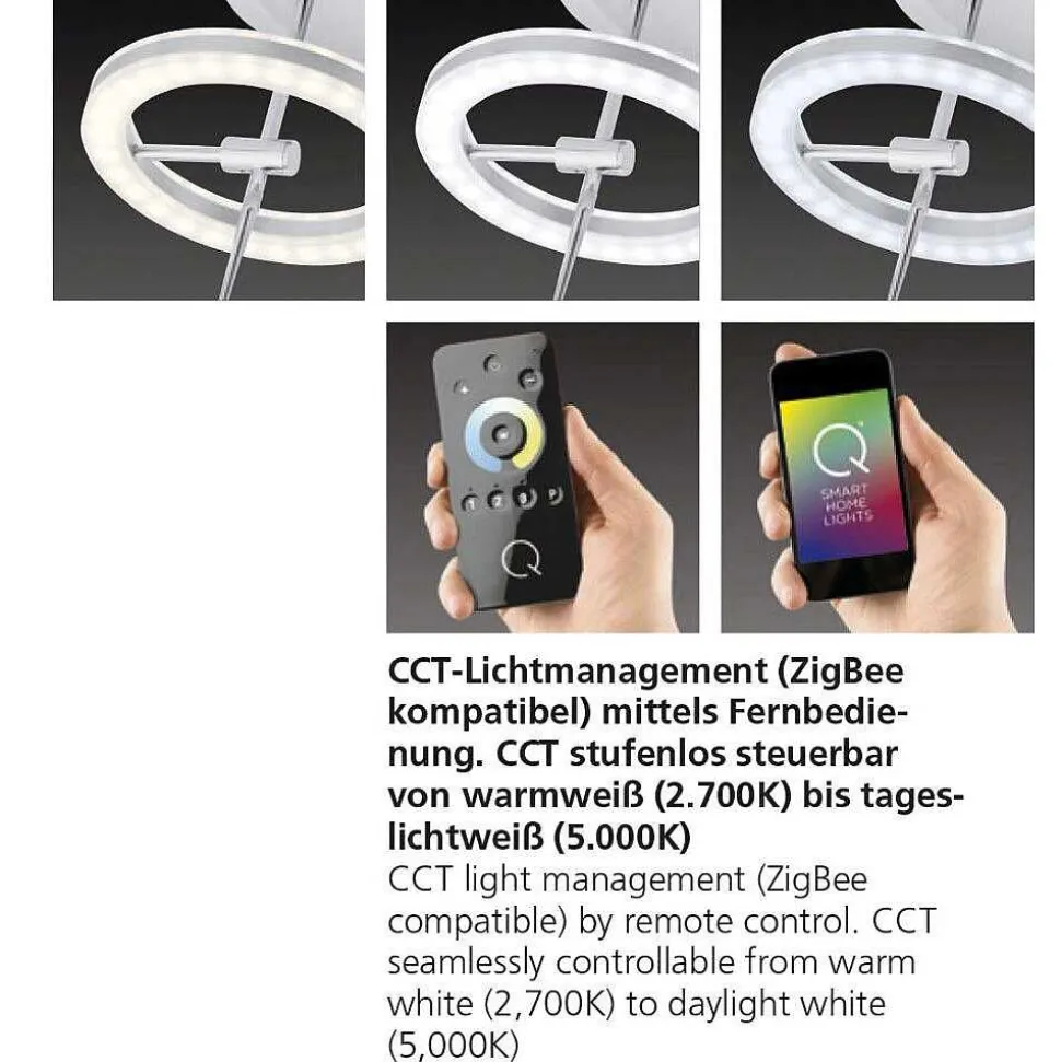 Plafonnier Paul Neuhaus Q-Amy Led Acier Inoxydable, 2 Lumieres, Telecommandes