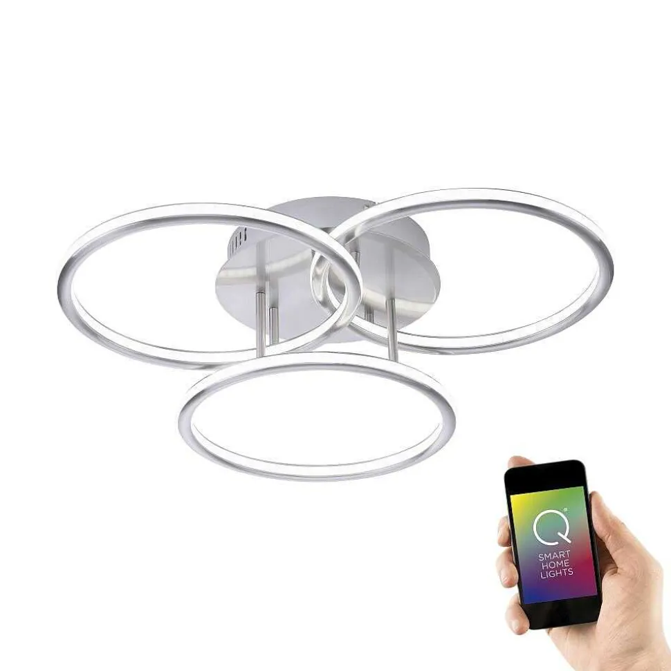 Plafonnier Paul Neuhaus Q-Amy Led Acier Inoxydable, 2 Lumieres, Telecommandes