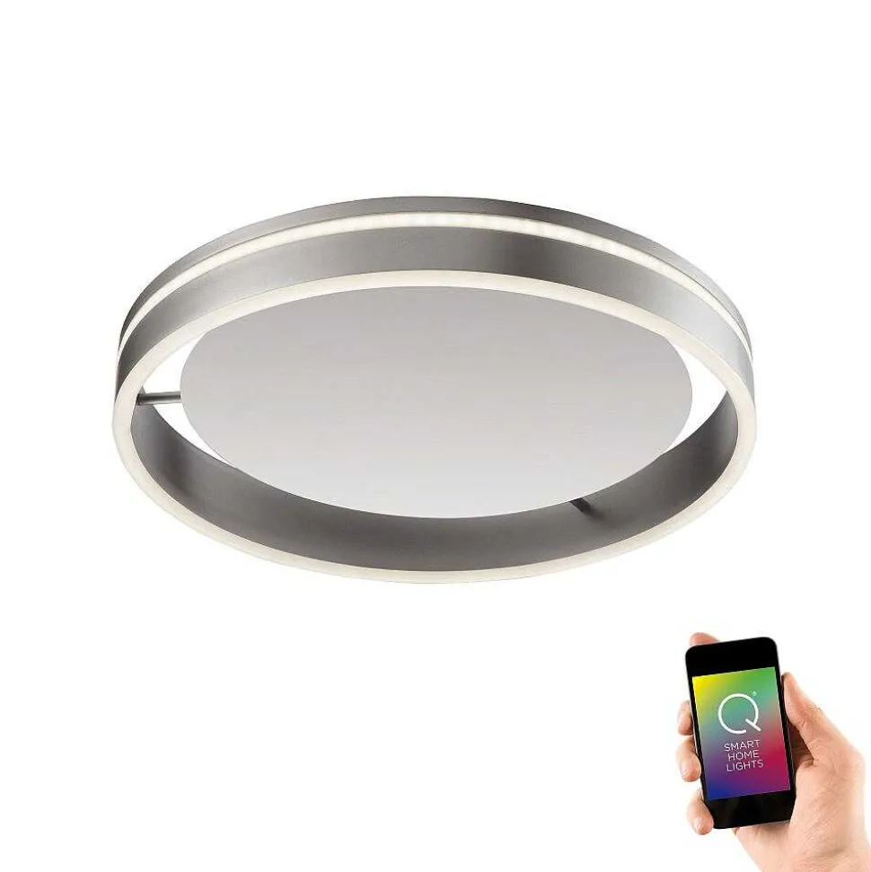 Plafonnier Paul Neuhaus Q-Inigo Led Acier Inoxydable, 2 Lumieres, Telecommandes