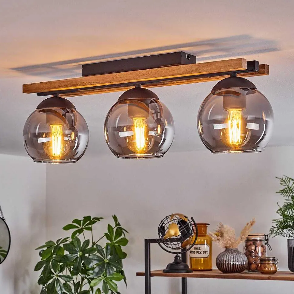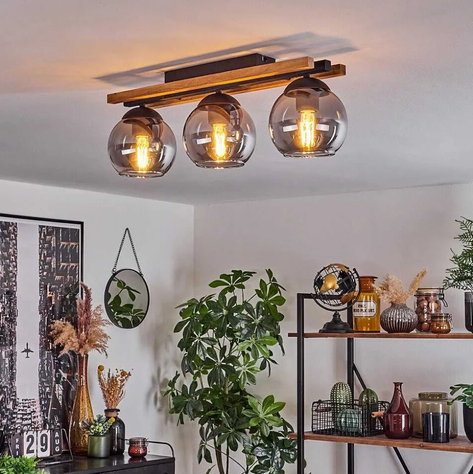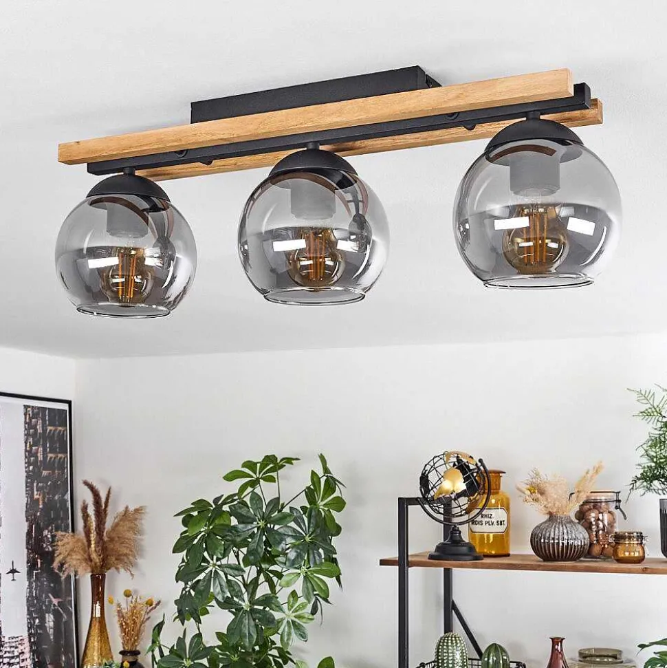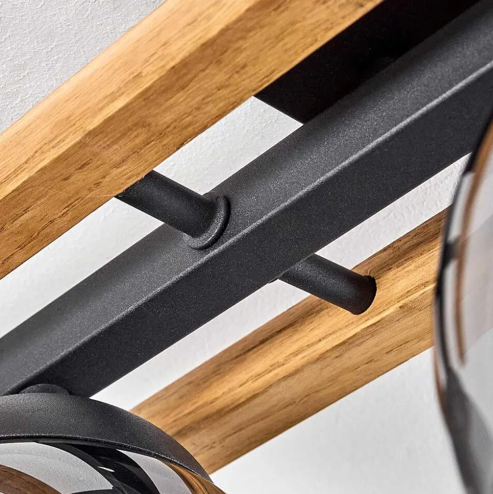Plafonnier Salmi Led Couleur Bois, Noir, Blanc, 1 Lumiere, Telecommandes