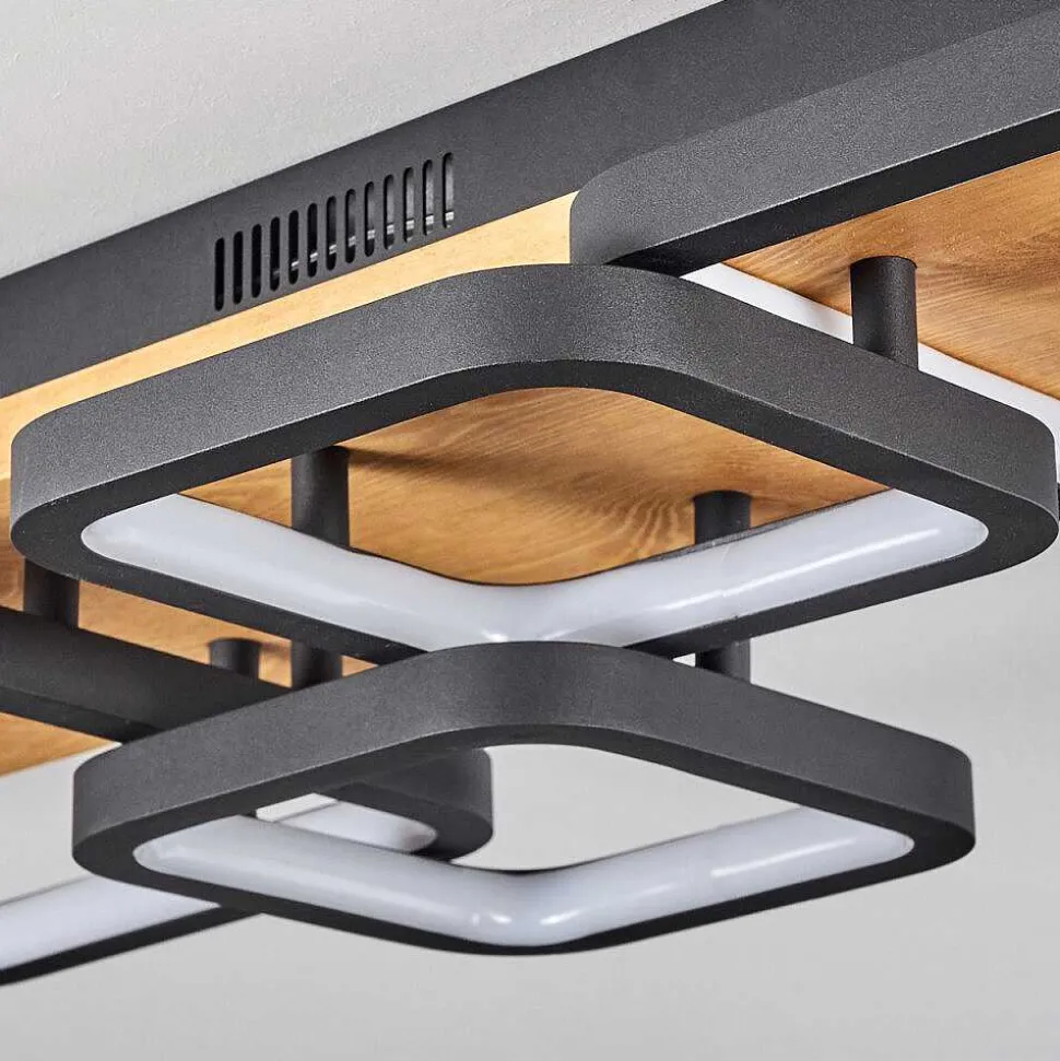 Plafonnier Salmi Led Couleur Bois, Noir, Blanc, 1 Lumiere, Telecommandes