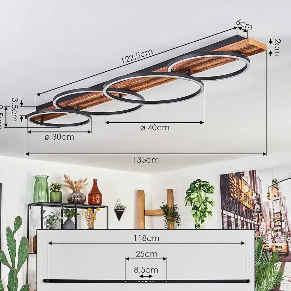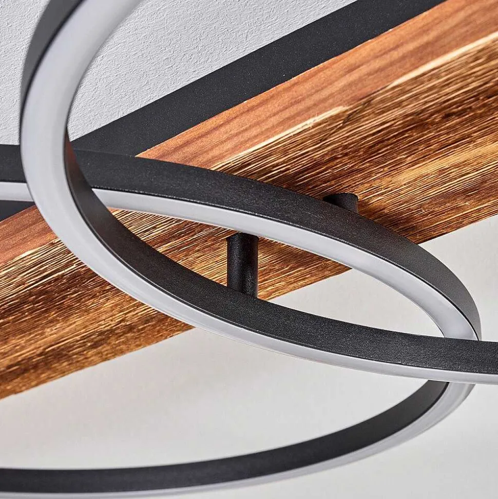 Plafonnier Salmi Led Brun, Couleur Bois, Noir, 1 Lumiere, Telecommandes