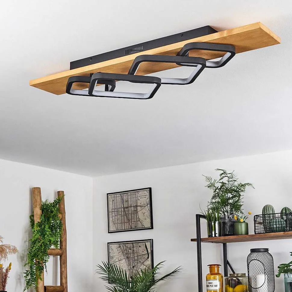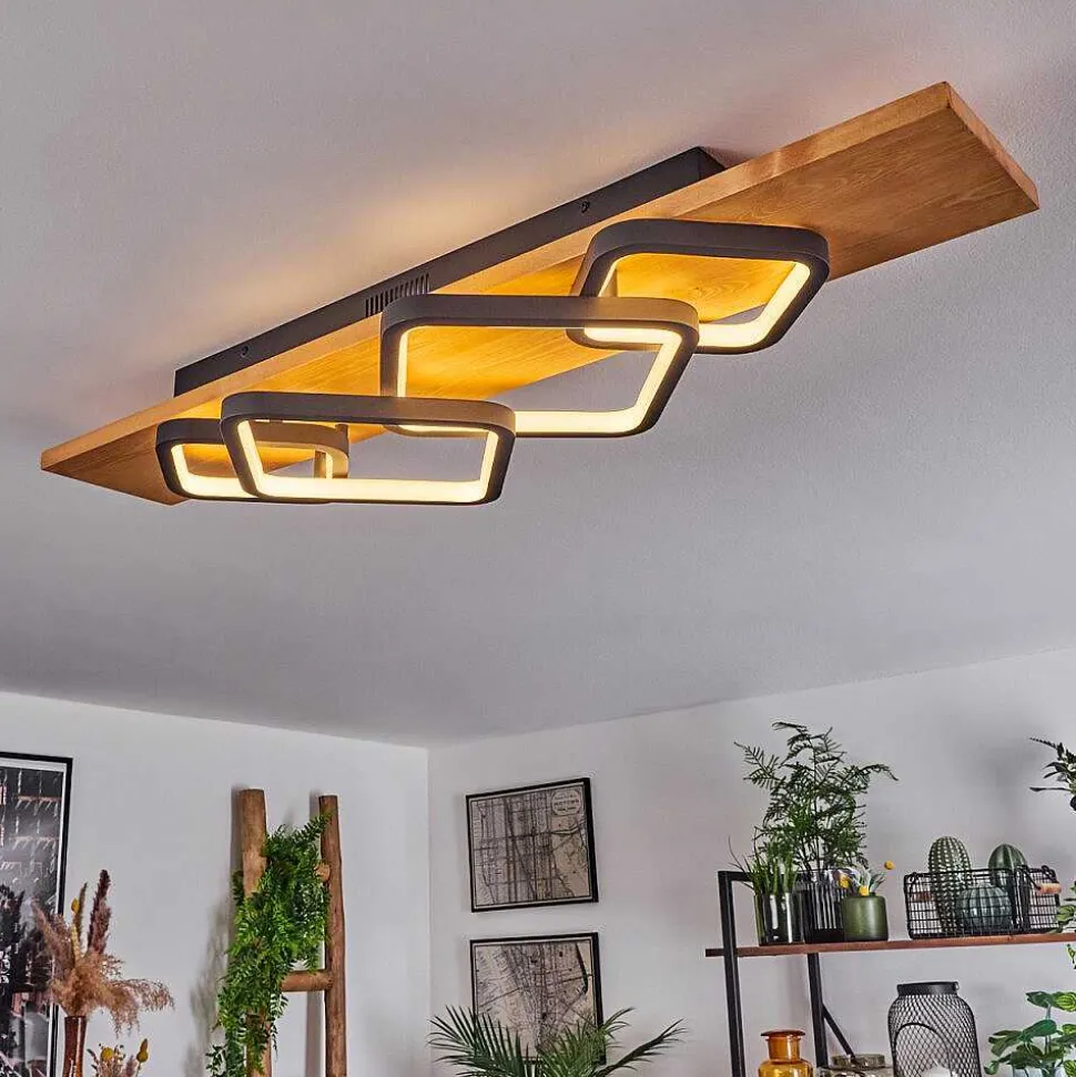 Plafonnier Salmi Led Brun, Couleur Bois, Noir, 1 Lumiere, Telecommandes
