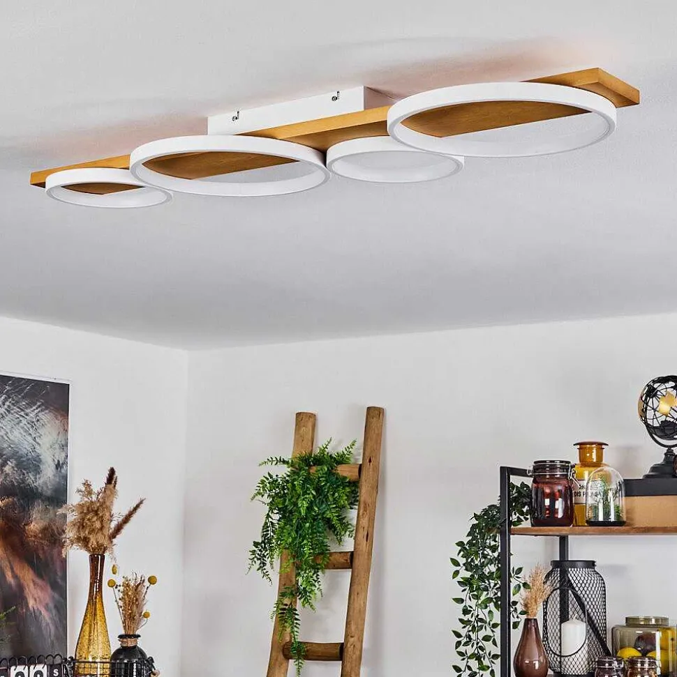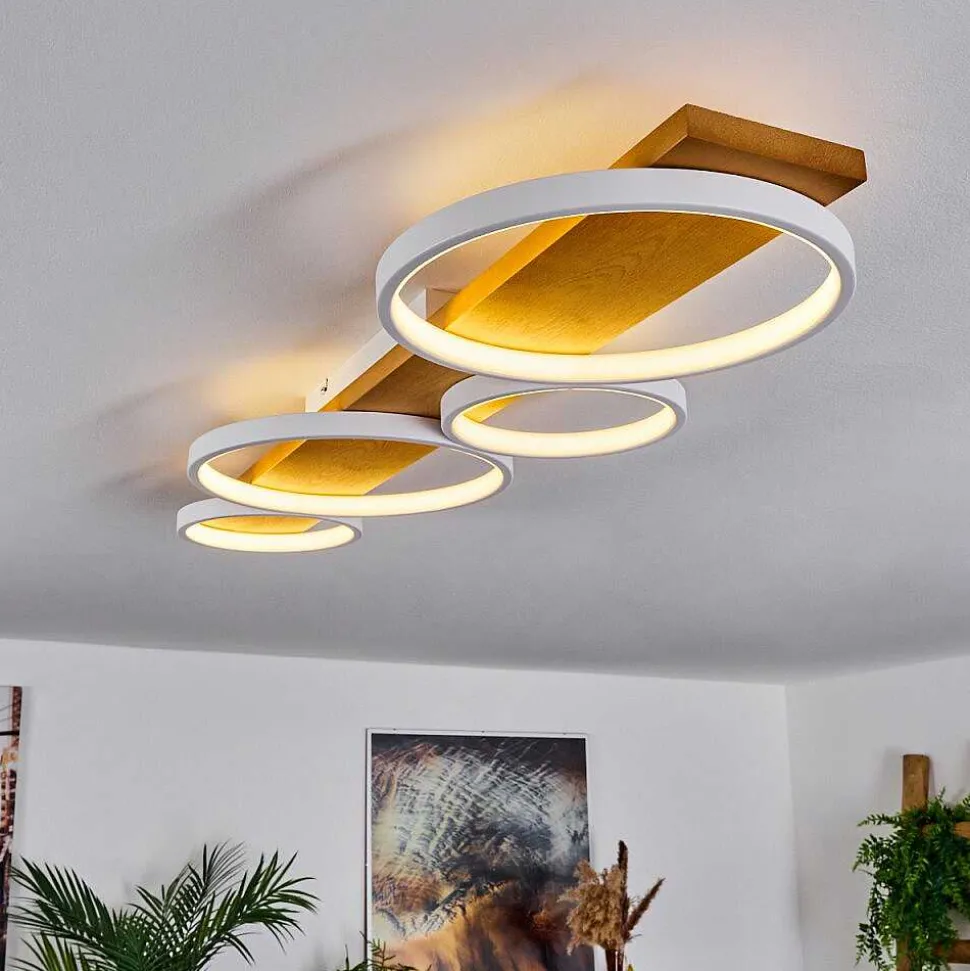 Plafonnier Salmi Led Couleur Bois, Noir, Blanc, 1 Lumiere, Telecommandes