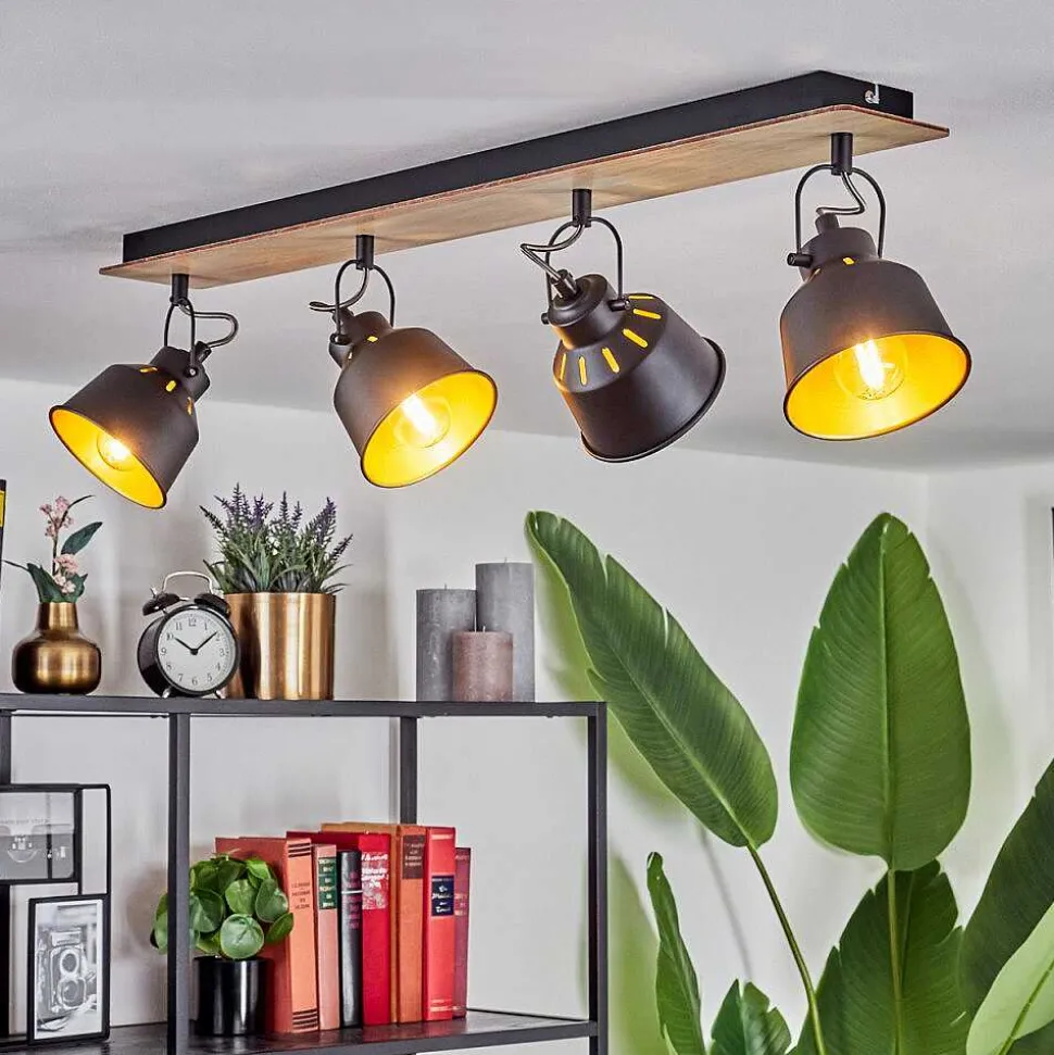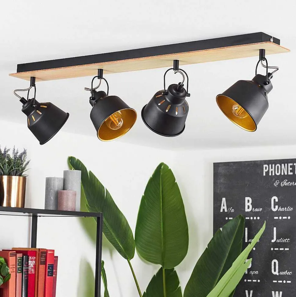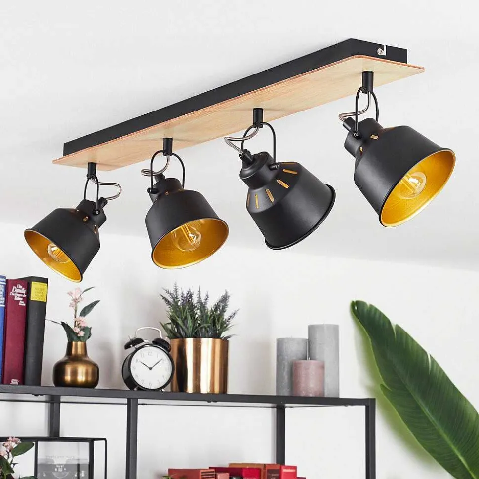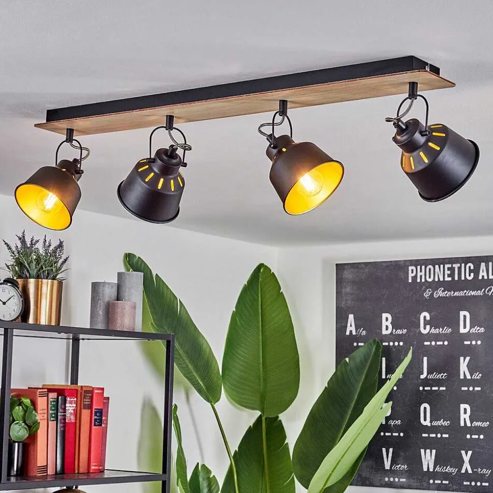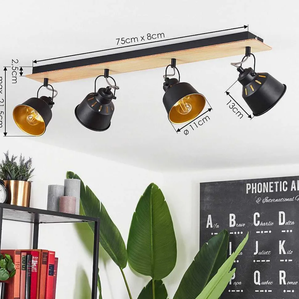 Plafonnier Salmi Led Brun, Couleur Bois, Noir, 1 Lumiere, Telecommandes