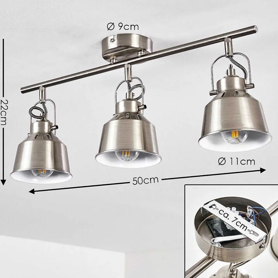 Plafonnier Safari Chrome Brosse, 3 Lumieres