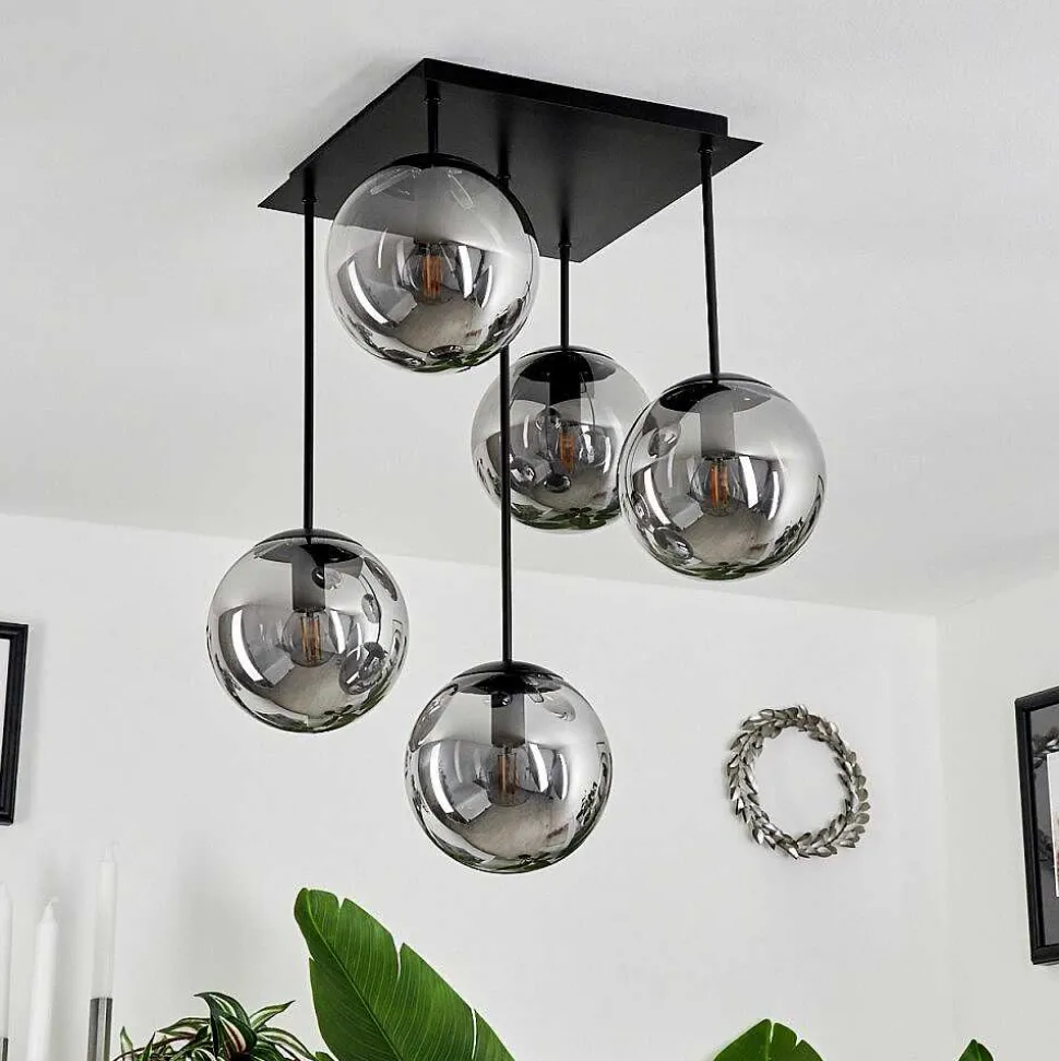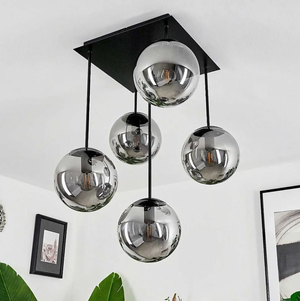 Plafonnier Salmi Led Couleur Bois, Noir, Blanc, 1 Lumiere, Telecommandes