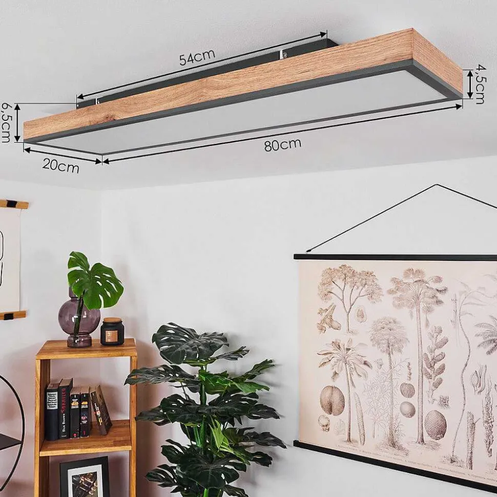 Plafonnier Salmi Led Couleur Bois, Noir, Blanc, 1 Lumiere, Telecommandes