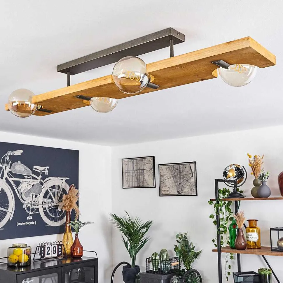 Plafonnier Salmi Led Couleur Bois, Noir, Blanc, 1 Lumiere, Telecommandes