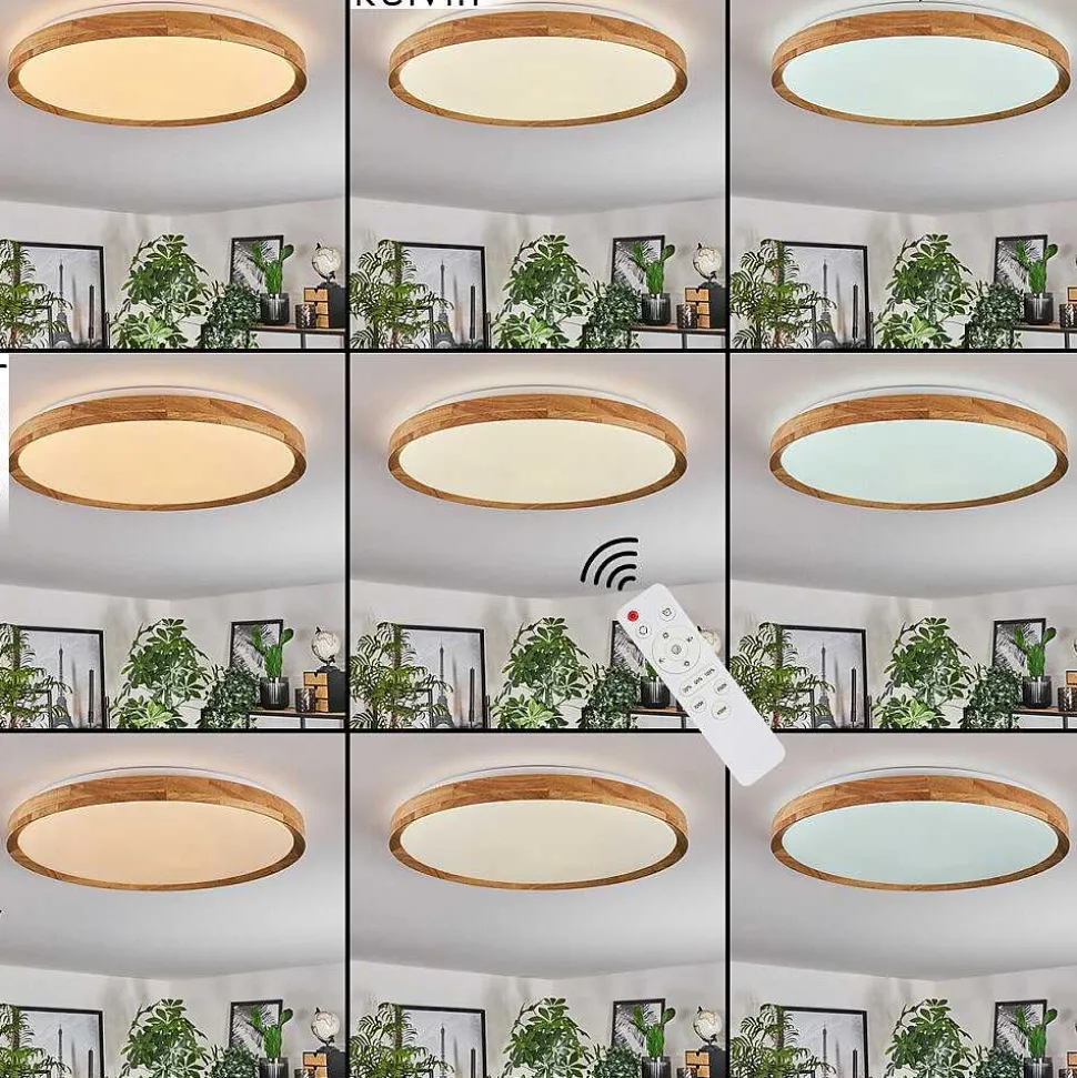 Plafonnier Salmi Led Couleur Bois, Noir, Blanc, 1 Lumiere, Telecommandes