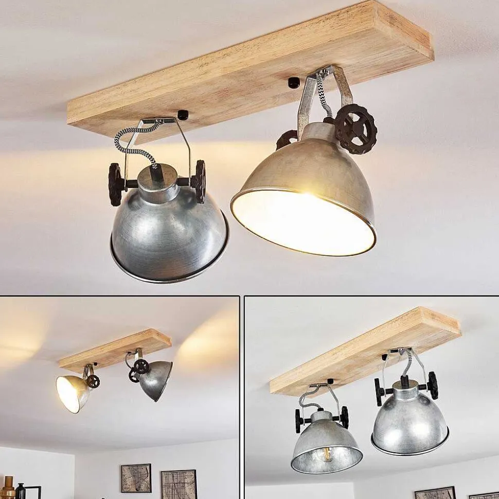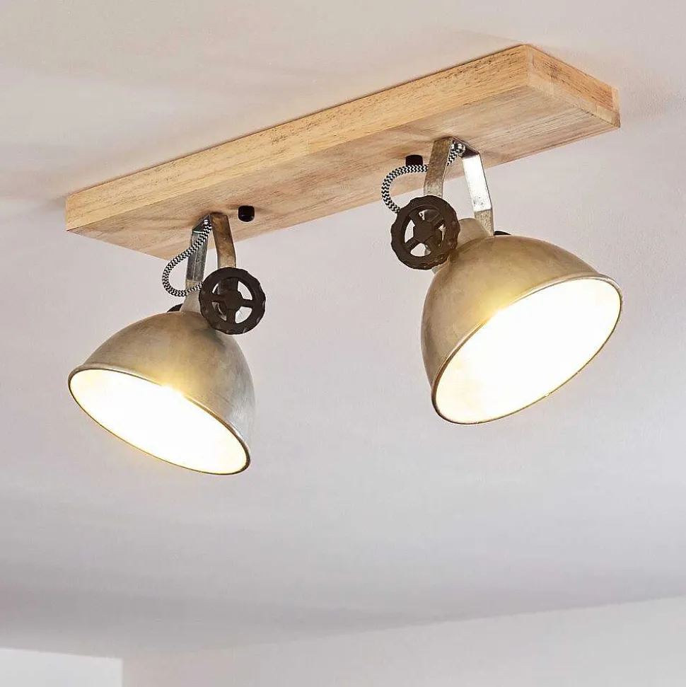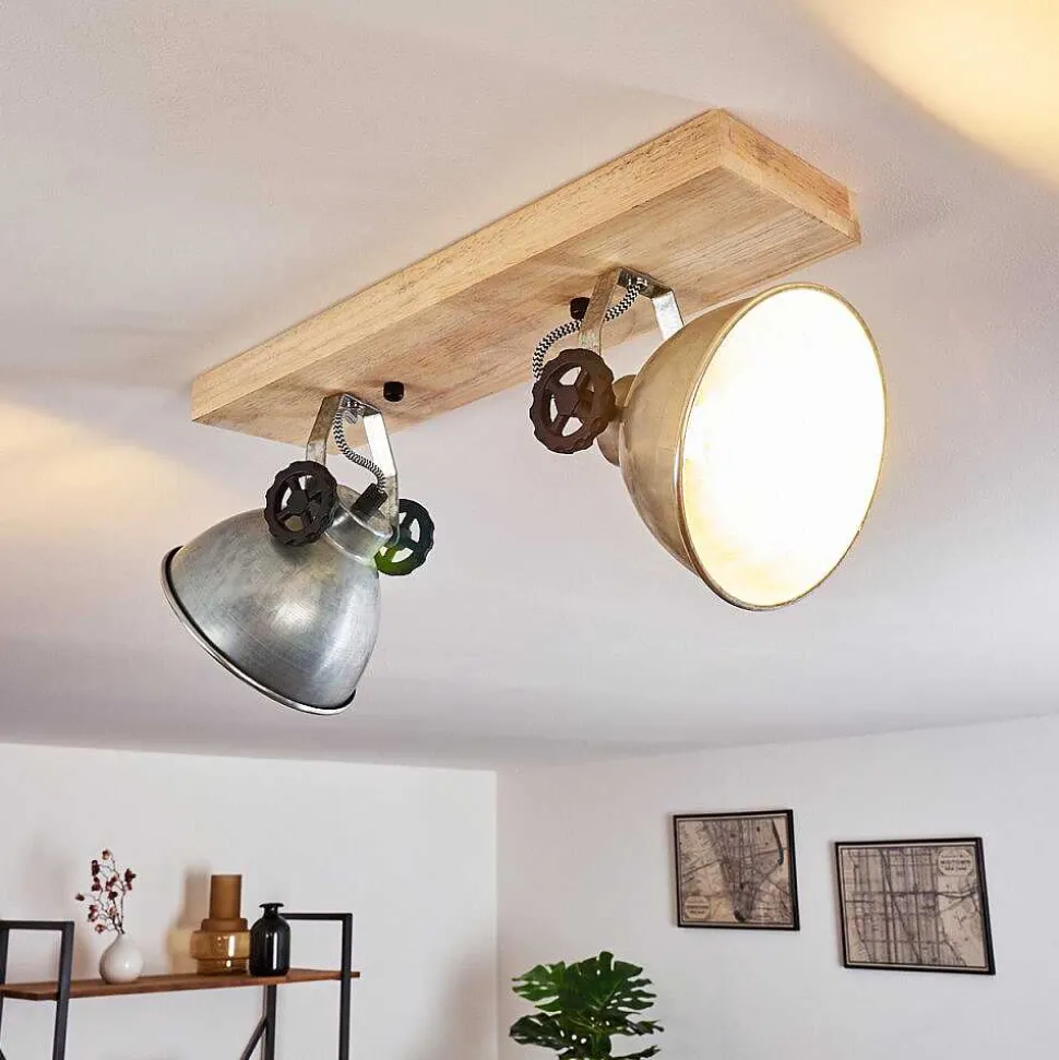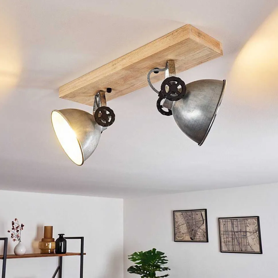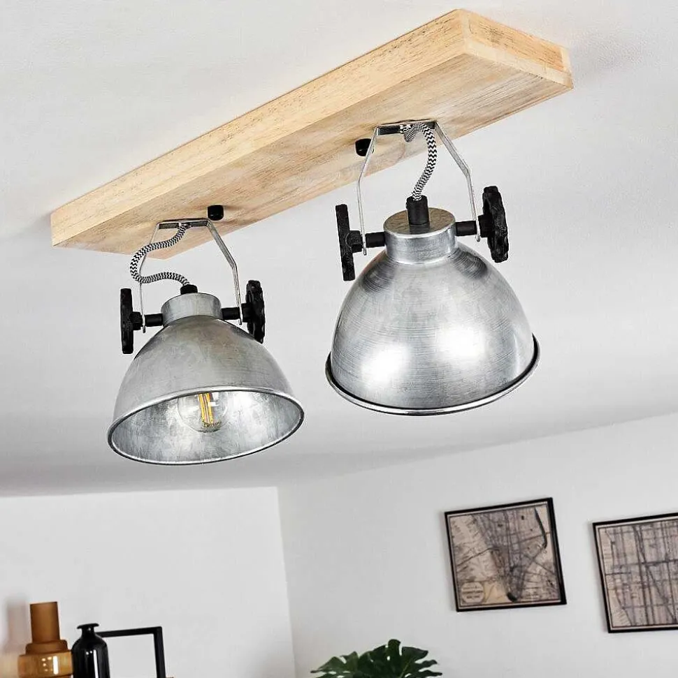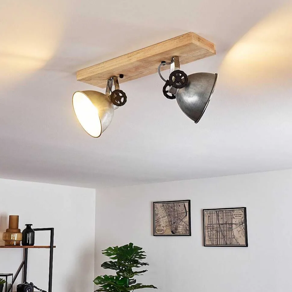 Plafonnier Salmi Led Brun, Couleur Bois, Noir, 1 Lumiere, Telecommandes