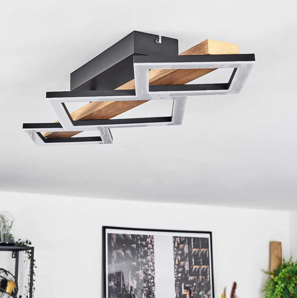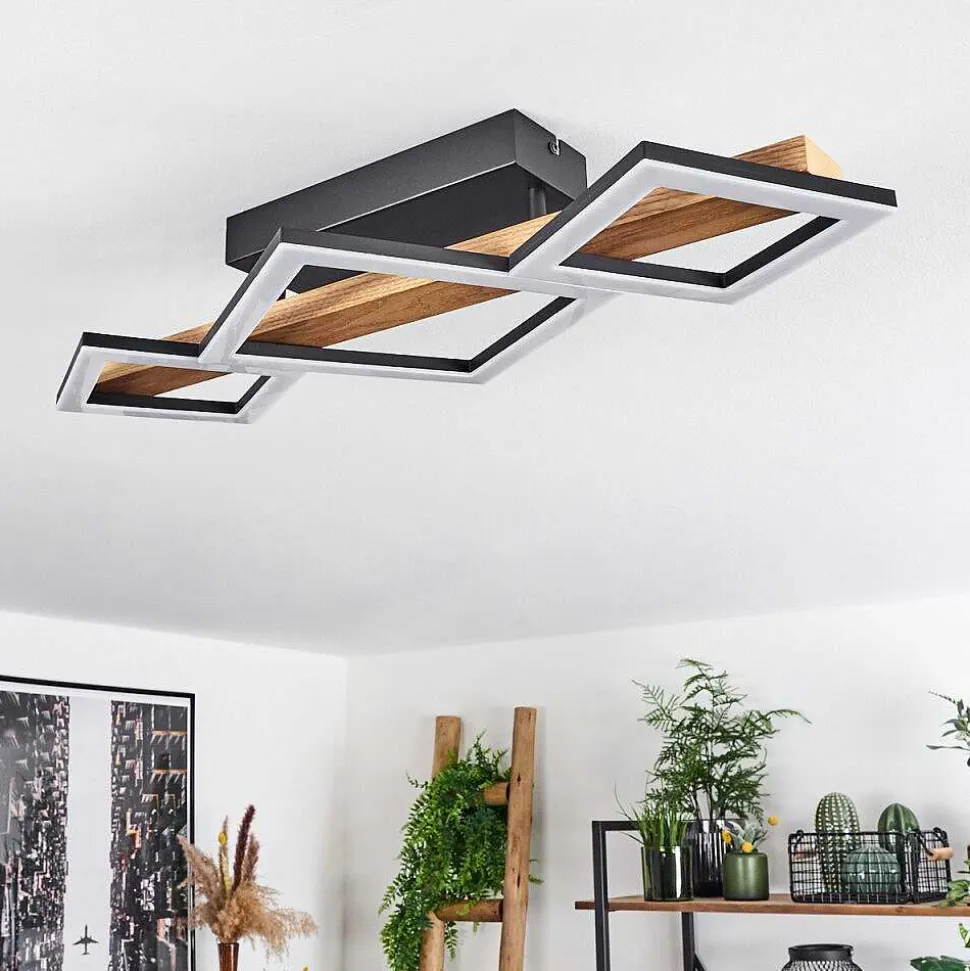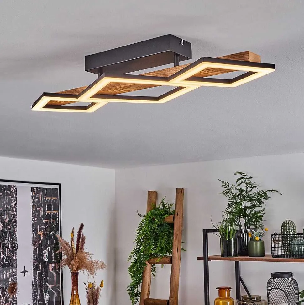 Plafonnier Salmi Led Couleur Bois, Noir, Blanc, 1 Lumiere, Telecommandes