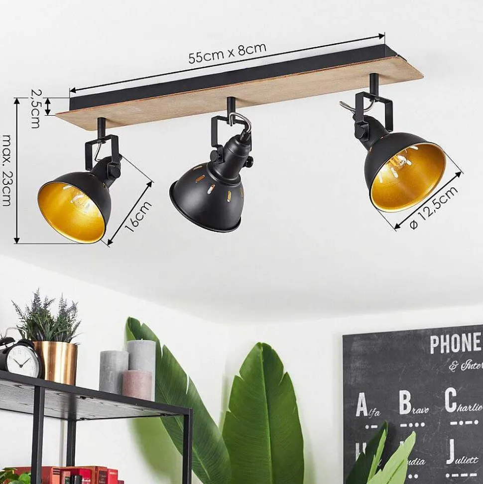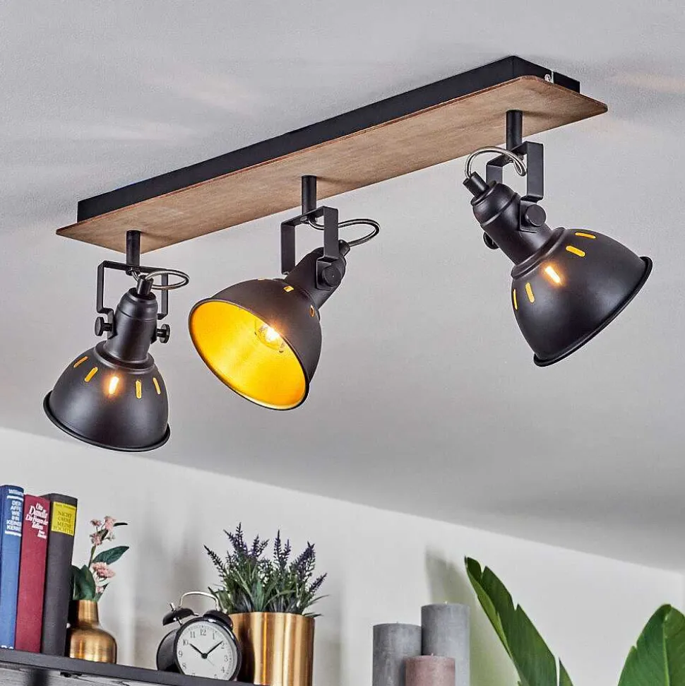 Plafonnier Salmi Led Brun, Couleur Bois, Noir, 1 Lumiere, Telecommandes