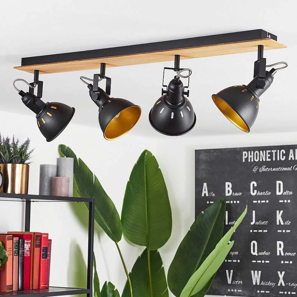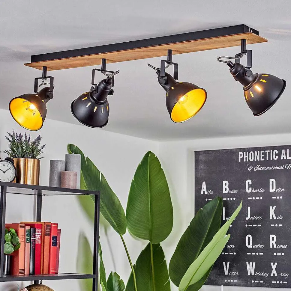 Plafonnier Salmi Led Couleur Bois, Noir, Blanc, 1 Lumiere, Telecommandes