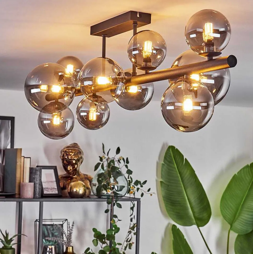 Plafonnier – Verre 10 Cm, 12 Cm, 15 Cm Chehalis Fume, 10 Lumieres