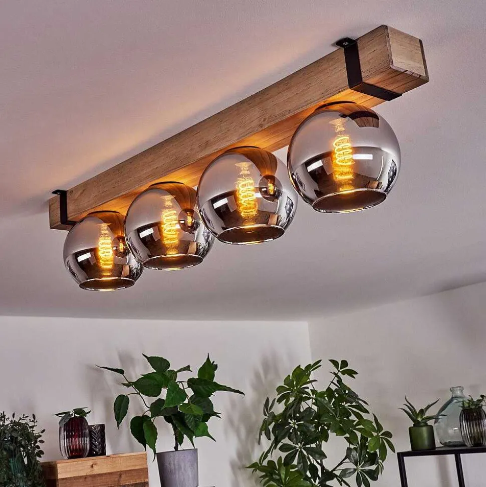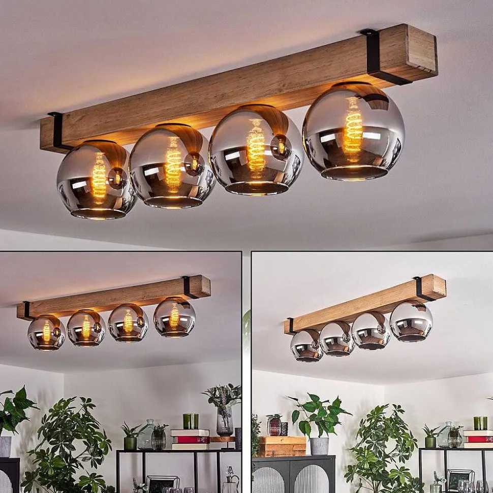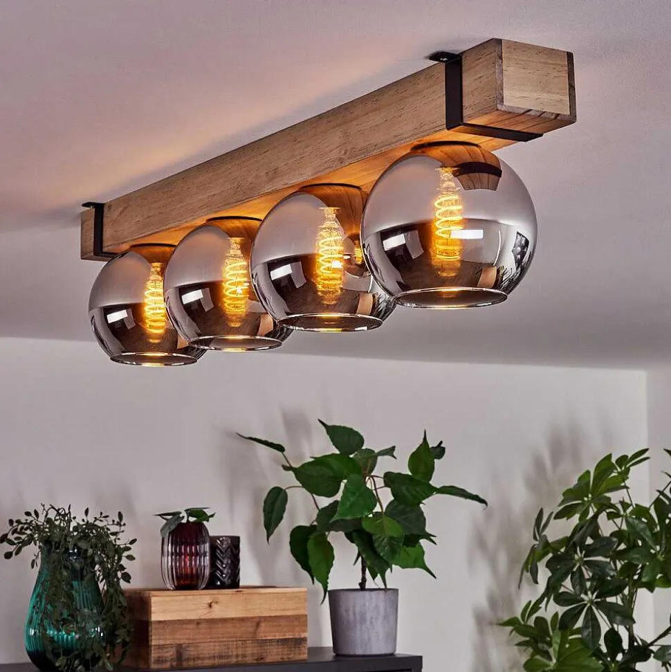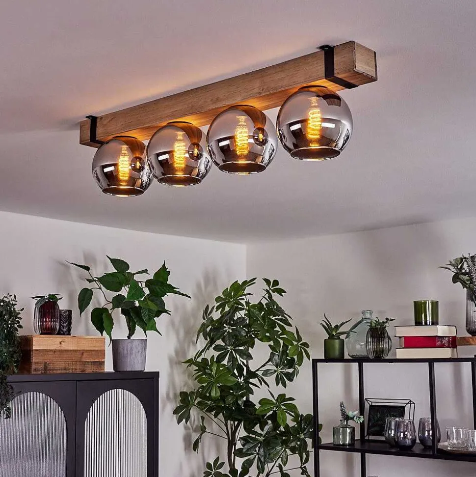 Plafonnier Salmi Led Brun, Couleur Bois, Noir, 1 Lumiere, Telecommandes